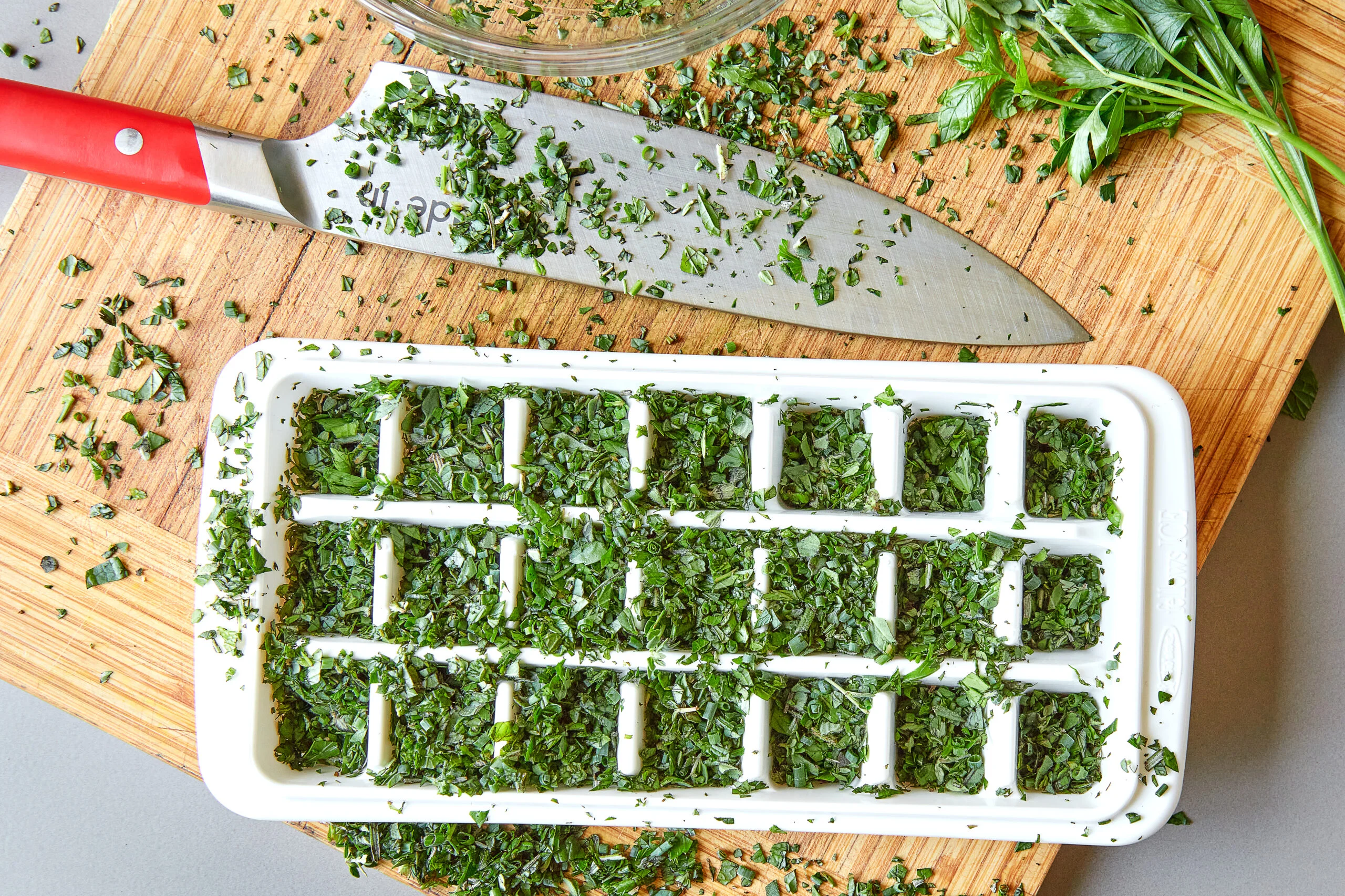 بمكن إعادة تدوير بقايا الأعشاب العطرية، بإضافتها إلى قوالب الثلج مع زيت الزيتون، أو الزيدة، للحصوا على مادة دهنية منكهة، تضفي رواح وأطعمه متناغمة للطعام.