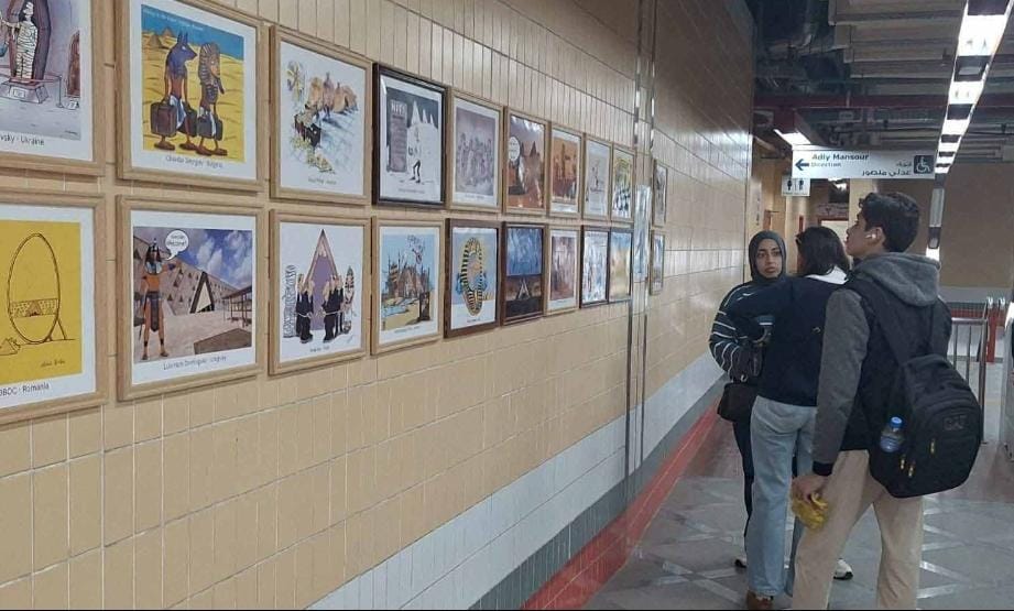 كواليس أول معرض دولي للكاريكاتير داخل محطة مترو صفاء حجازي (خاص)