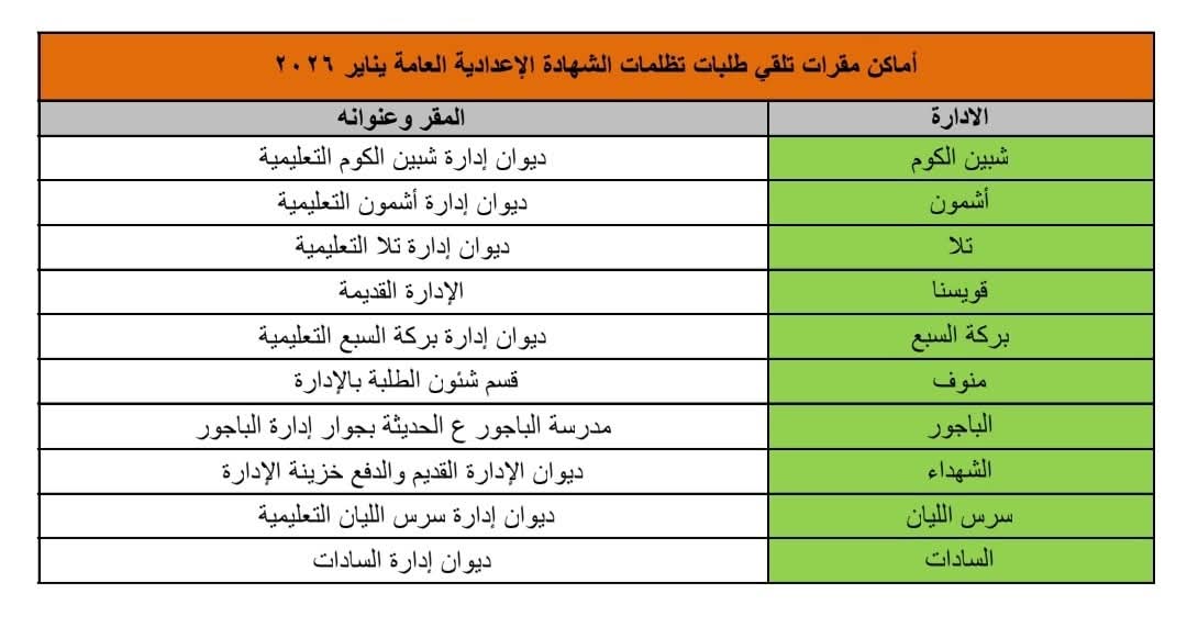 مواعيد ومقرات تظلم الشهادة الإعدادية بمحافظة المنوفية 2026