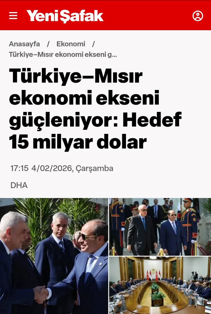 وأبرز عنوان مقال لصحيفة “حرييت” أن 'المحور الاقتصادي بين تركيا ومصر يتعزز: الهدف هو 15 مليار دولار".