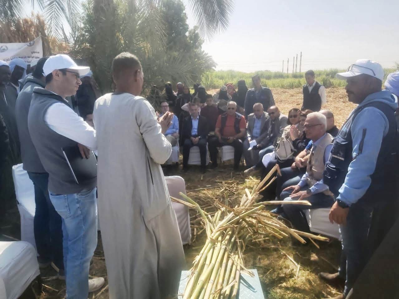 السفير الكندى يشارك في حصاد قصب السكر المزروع بالشتل بنصر النوبة
