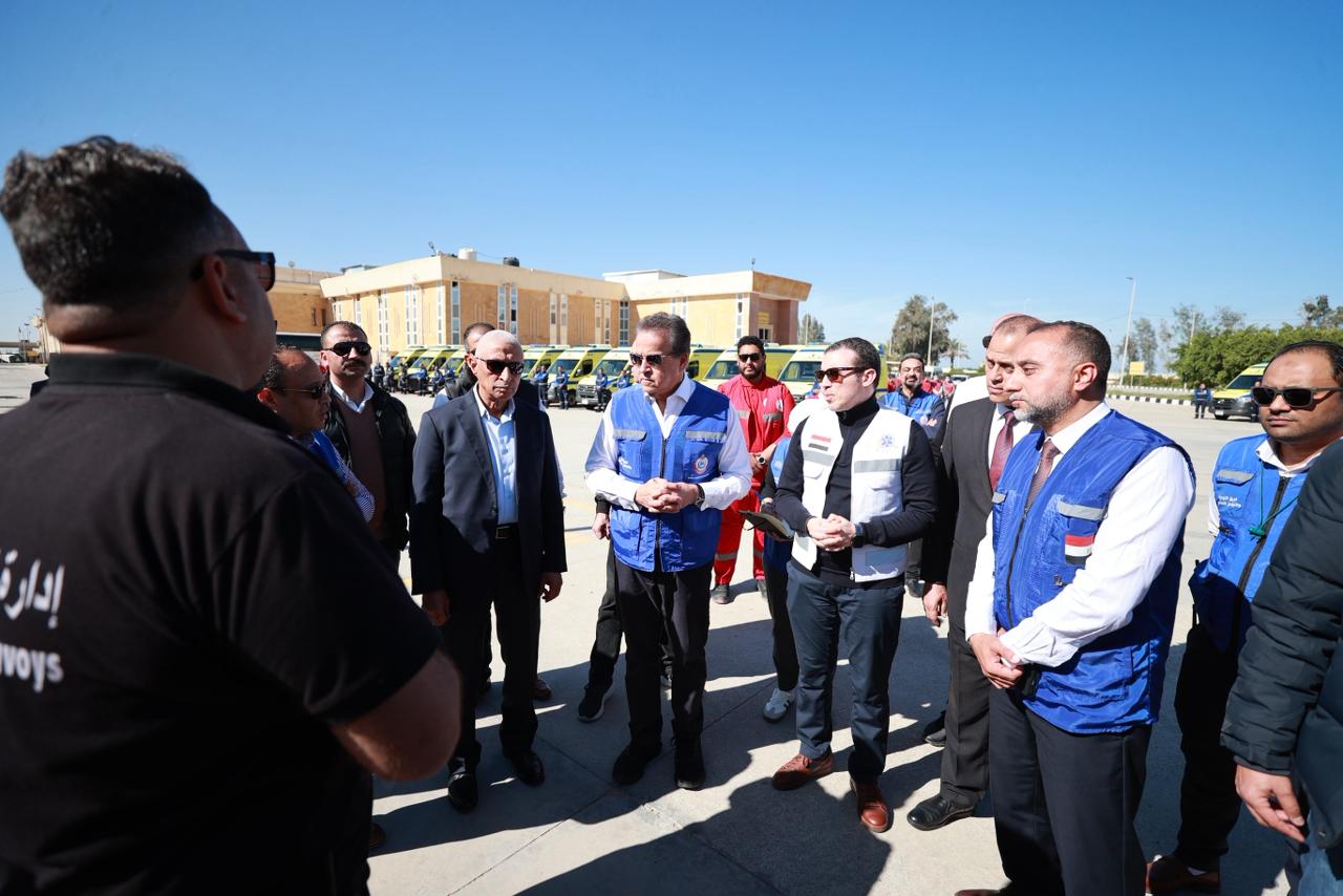 تفقد وزير الصحة والسكان، الدكتور خالد عبدالغفار، معبر رفح البري بمحافظة شمال سيناء، يرافقه محافظ شمال سيناء، اللواء خالد مجاور، لمتابعة استقبال وعلاج المرضى والمصابين من الأشقاء الفلسطينيين القادمين والعائدين إلى قطاع غزة.