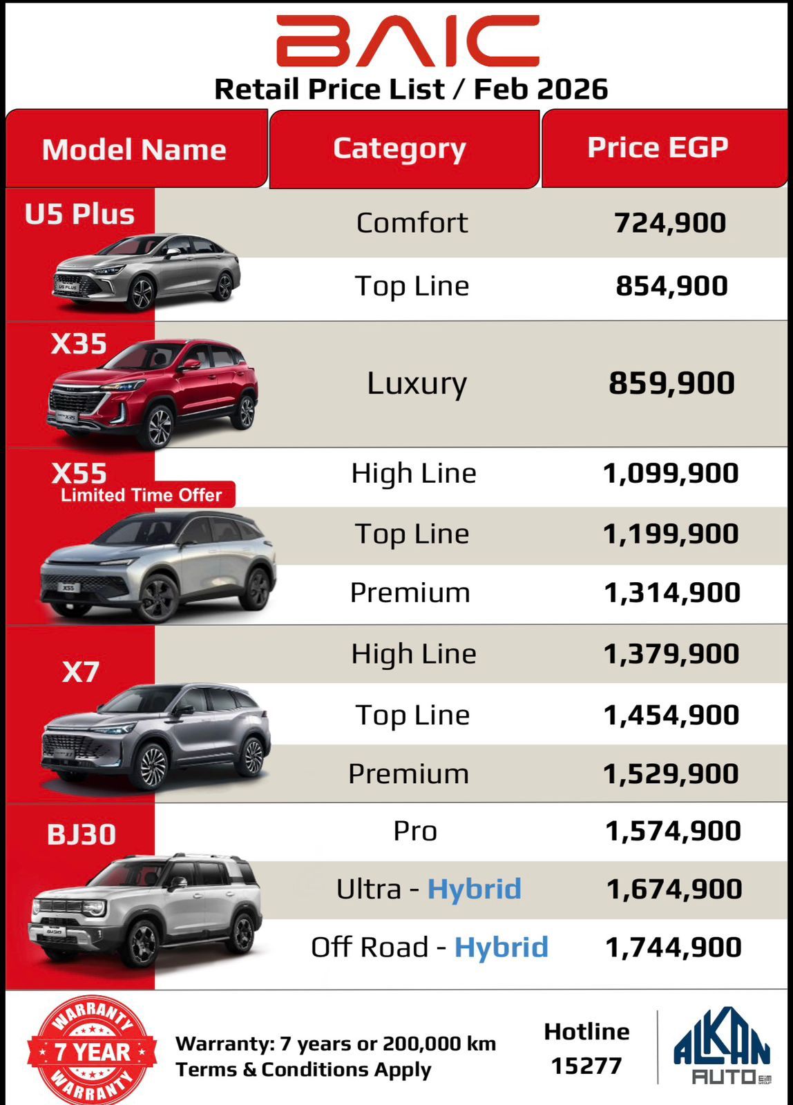 | BJ30e off-road | مليون و745 ألف جنيه |