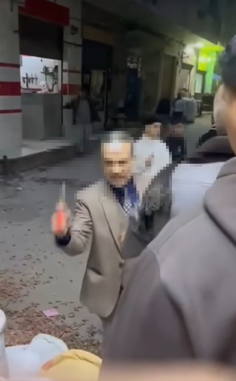 وظهر بالفيديو شخصين أحدهم قام بإلقاء البضائع الخاصة بالمحل بالشارع، واعتدى على صاحب المحل، وأجبره على غلق المحل، قائلا: "اقفل أم المحل ده يلا".