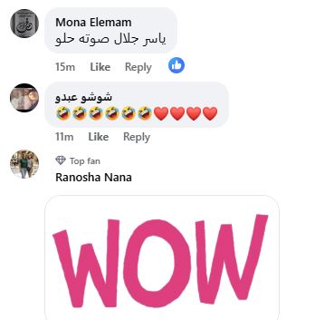 وجاءت تعليقات الجمهور معبّرة عن إعجابهم بالفيديو، حيث كتبت منى الإمام: “ياسر جلال صوته حلو”، فيما علّقت رانوشا نانا، قائلة: "واوو"، في تفاعل لافت من المتابعين.