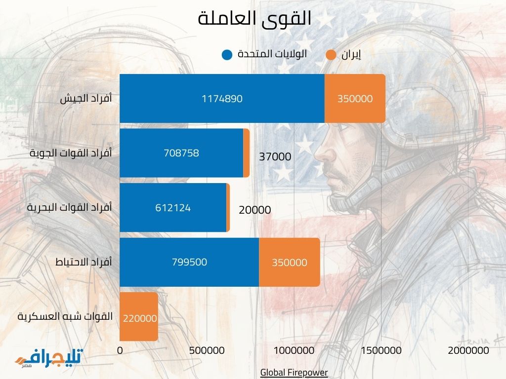 تُعد القوى العاملة من العناصر الأساسية في أي مواجهة عسكرية محتملة، يليها مؤشر القدرة على التعبئة الشاملة، ويعكس هذا المؤشر الحد الأقصى النظري للأفراد الذين يمكن للدولة حشدهم للمشاركة في الحرب خلال فترة زمنية ممتدة، استنادًا إلى نماذج تاريخية تعود إلى الحربين العالميتين الأولى والثانية، مع الأخذ في الاعتبار متطلبات التدريب والتجهيز والنقل على مدار أربع سنوات مفترضة.