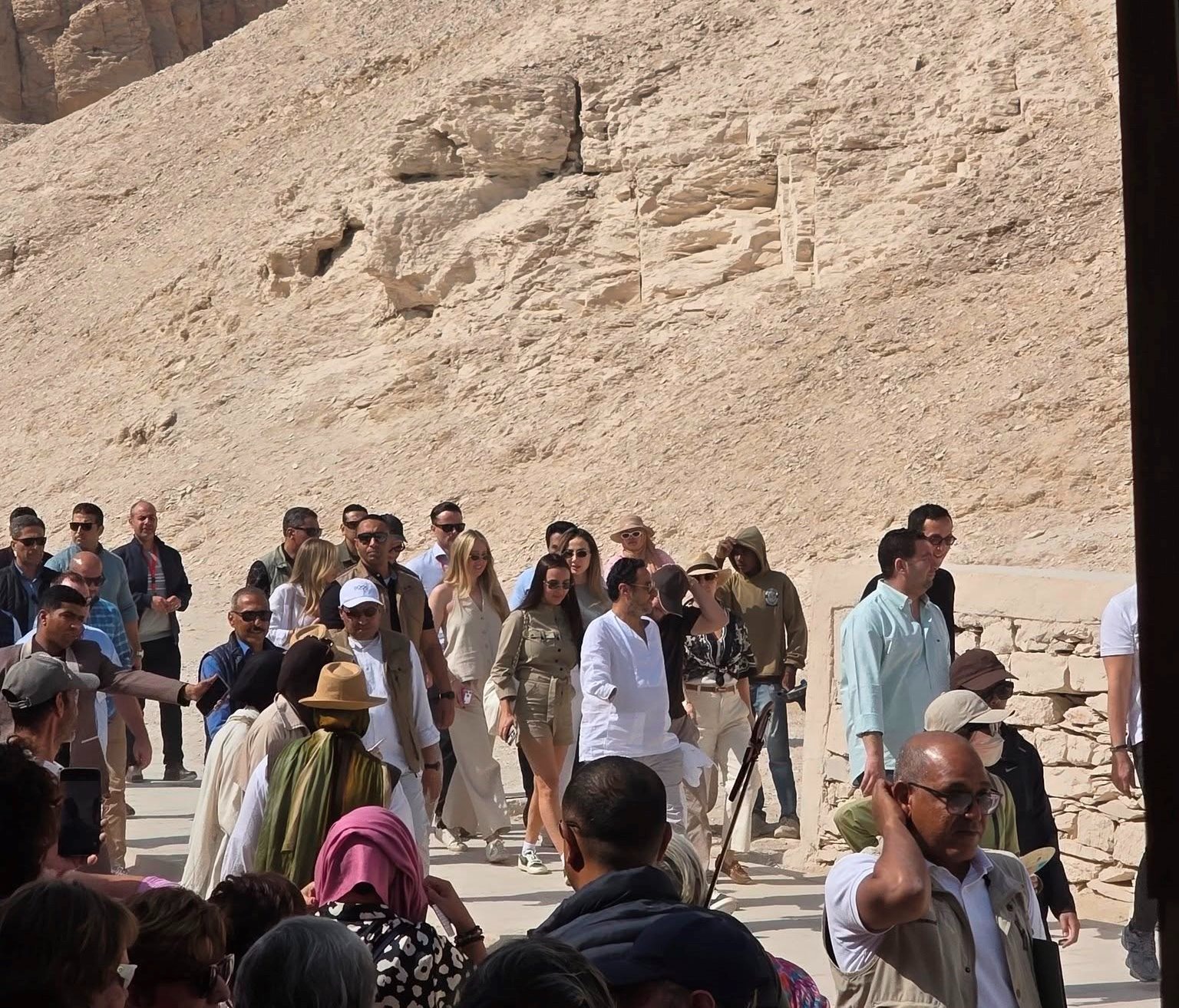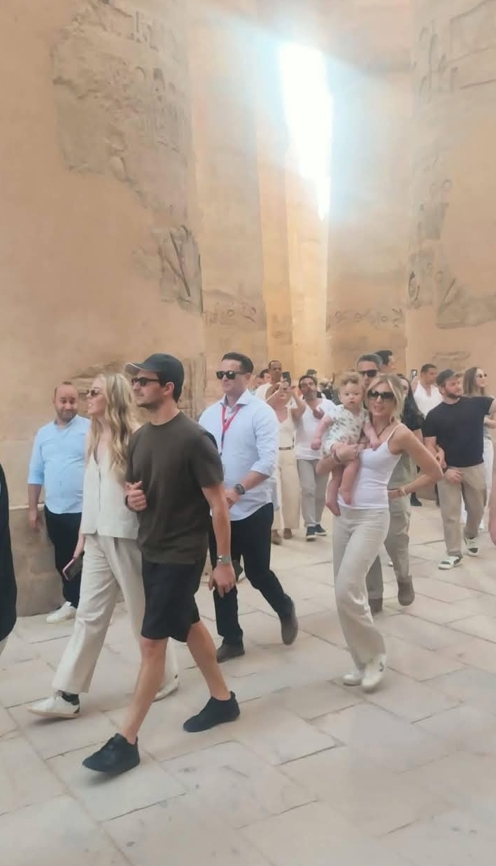 وشملت الجولة السياحية زيارة معبد الملكة حتشبسوت بالدير البحري، ثم وادي الملوك، قبل أن تختتم بمحطة رئيسية داخل مجمع معابد الكرنك، حيث توقف الزوجان طويلًا أمام تفاصيل المعابد والنقوش التي تحكي تاريخًا ممتدًا لآلاف السنين.