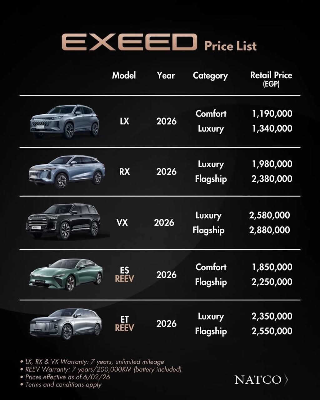 وخلال أيام المعرض، تقدم إكسيد مصر مجموعة من العروض التمويلية الحصرية على طرازي RX، وVX، بالتعاون مع شركائها من الجهات التمويلية، بما يتيح للعملاء فرص امتلاك غير مسبوقة، تشمل: دفع 50% مقدم مع فائدة صفر% وسداد كامل المبلغ المتبقي بعد 12 شهرًا بنظام الدفعة الواحدة.