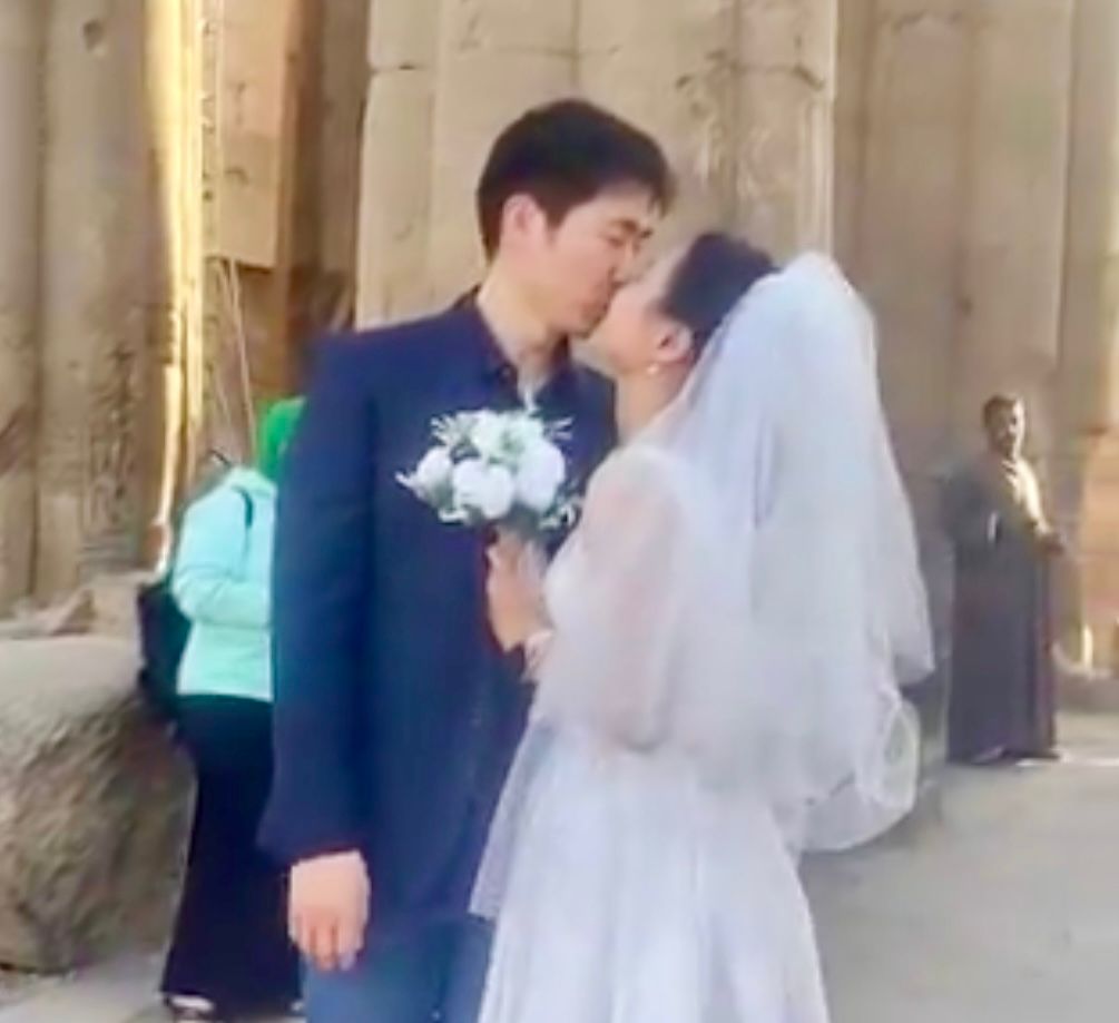اختار سائح صيني أن يبدأ فصلًا جديدًا من حياته الزوجية من قلب التاريخ، بعدما احتفل بزفافه على حبيبته داخل ساحات معبد الأقصر، أحد أعظم شواهد الحضارة الإنسانية، في لقطة جمعت بين الحب وقدسية المكان وعظمة الزمن.