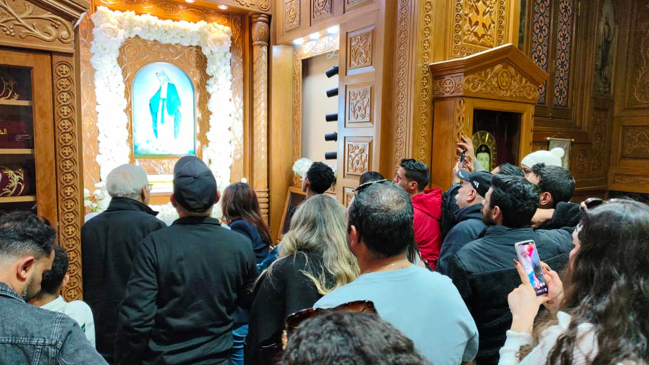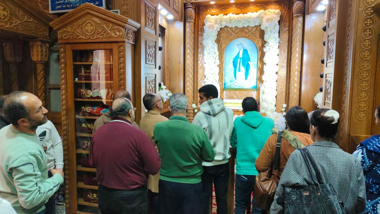 توافد المصلون من مختلف المحافظات وخارج مصر لزيارة الكنيسة والتبرك بالصورة التي ينساب منها الزيت، وسط ترانيم وتسابيح خاصة بالسيدة العذراء، منها «السلام لك يا مريم». وكان في استقبال الزائرين كهنة الكنيسة: القمص بولا سعد، والقس بيمن صابر، والقس أرميا فهمي، والقس بيشوي مجدي، والقس أرساني منير.