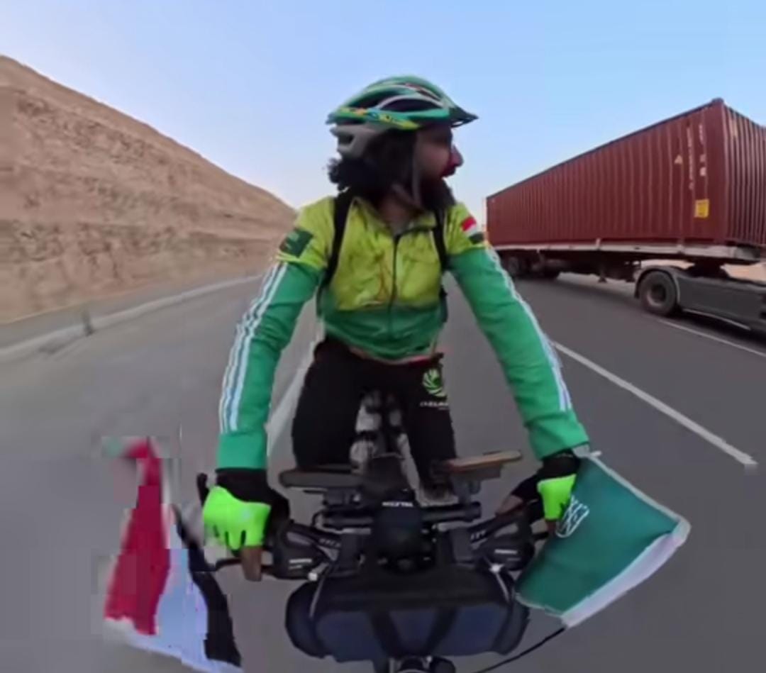 أول مصري معتمر يدخل أراضي المملكة بدراجته