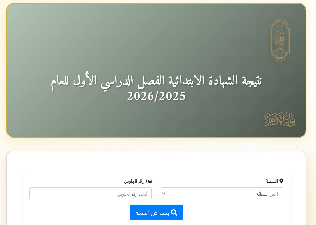 يستطيع الطلاب وأولياء الأمور طلاب الأزهر الشريف الحصول على نتيجة الشهادة الابتدائية الأزهرية 2026 من خلال بوابة الأزهر الإلكترونية من هنــــــــــــــا.