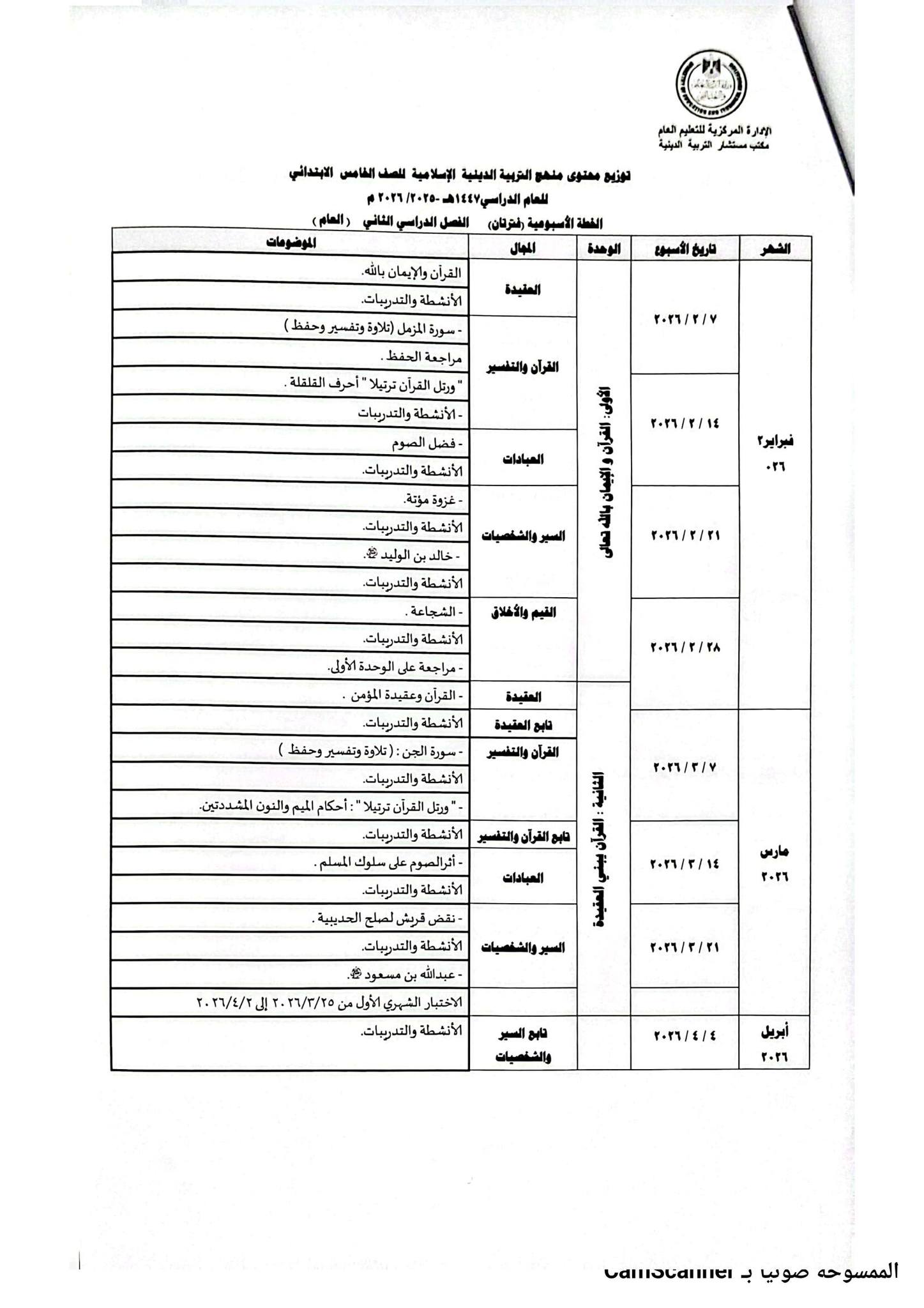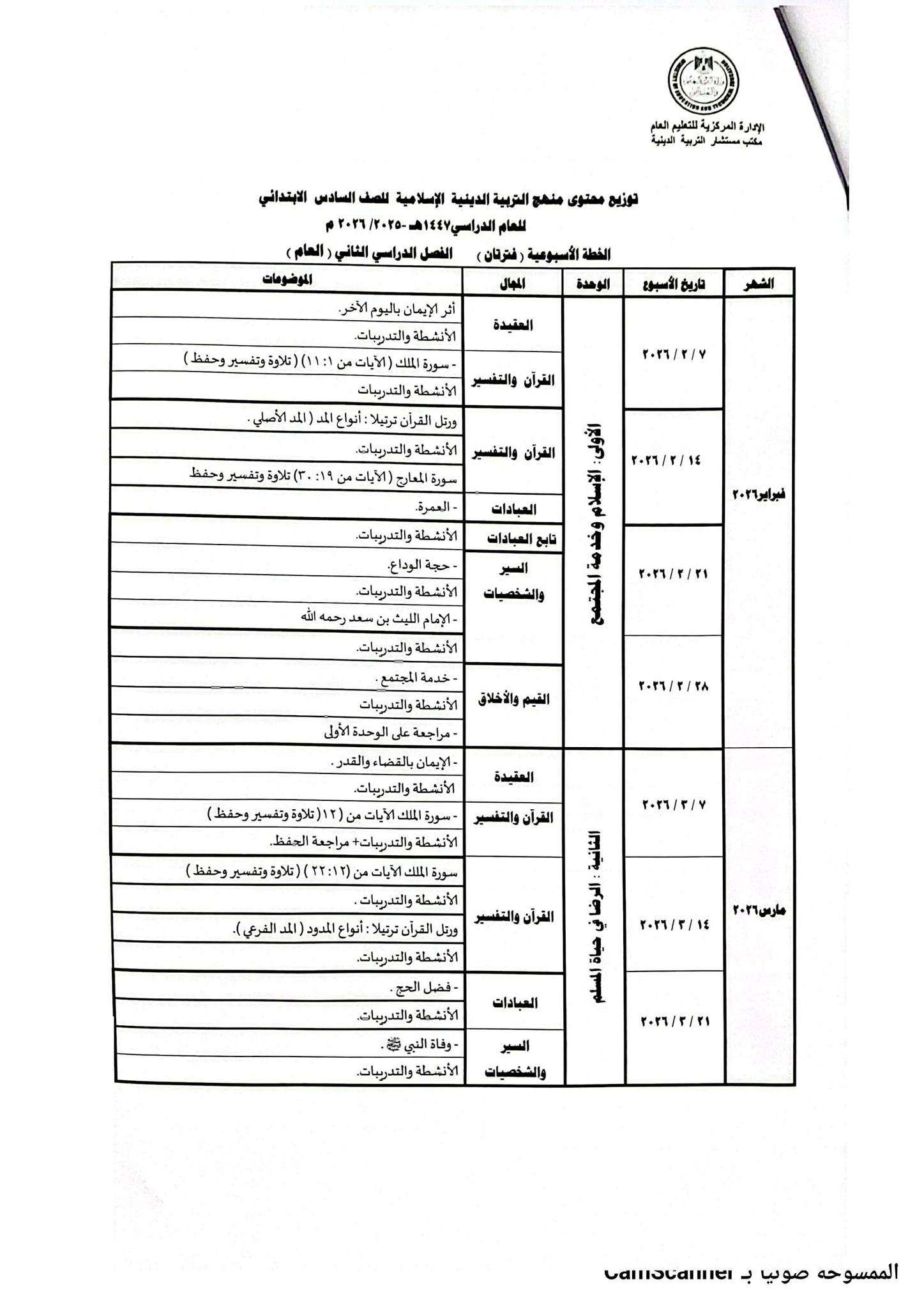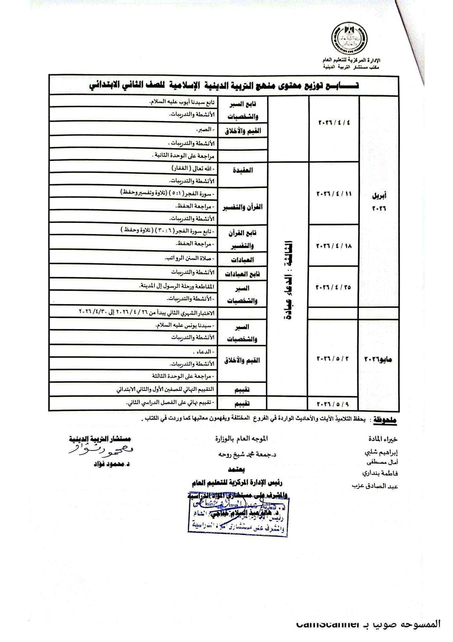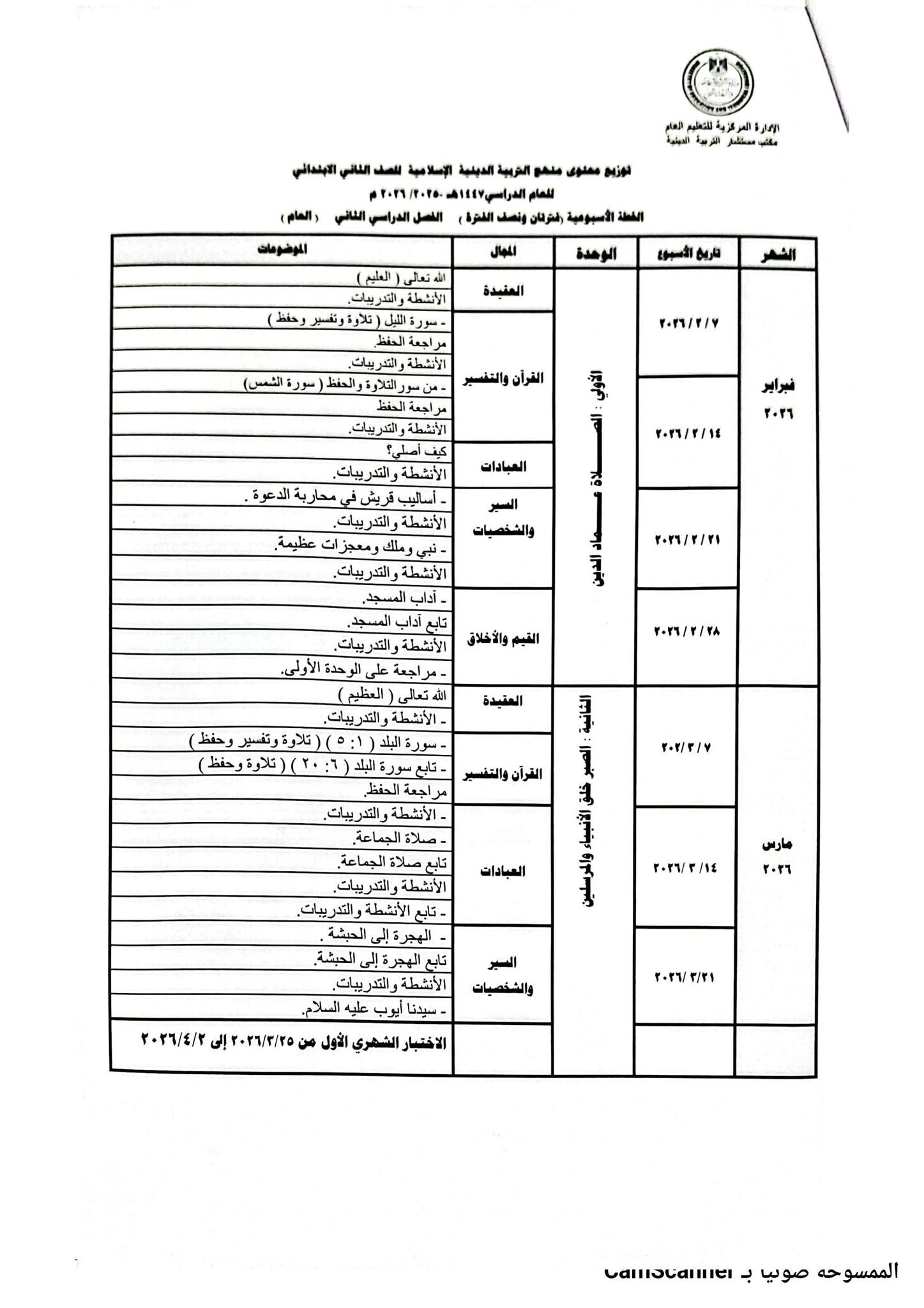 ويمكن للطلاب والمعلمين معرفة توزيع منهج التربية الدينية للصف الثاني الابتدائي 2026 الترم الثاني من خلال الصور التالية :
