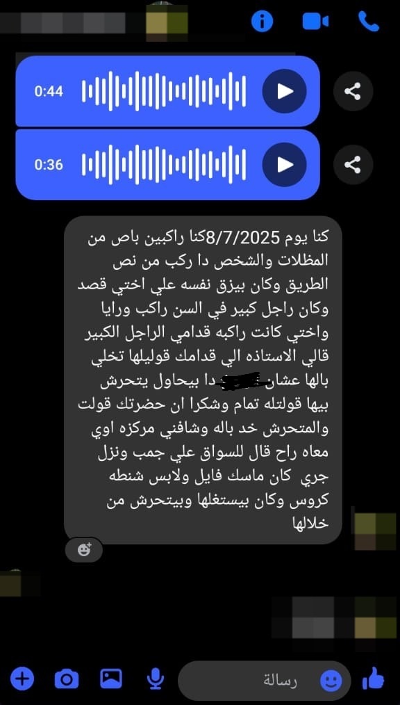 وأضافت الفتاة أن الشاب حسب زعمها، بدأ في الاحتكاك الجسدي المتعمد بأختها، والذي لفت اتباهها، رجل مسن كان يجلس خلفها بأن ذلك الشاب يحاول الاعتداء على شقيقتها، قائلة: “فوجئت براجل مسن بيقولي خلي الأستاذة اللي قدامك تاخد بالها، في واحد بيحاول يتحرش بيها”.