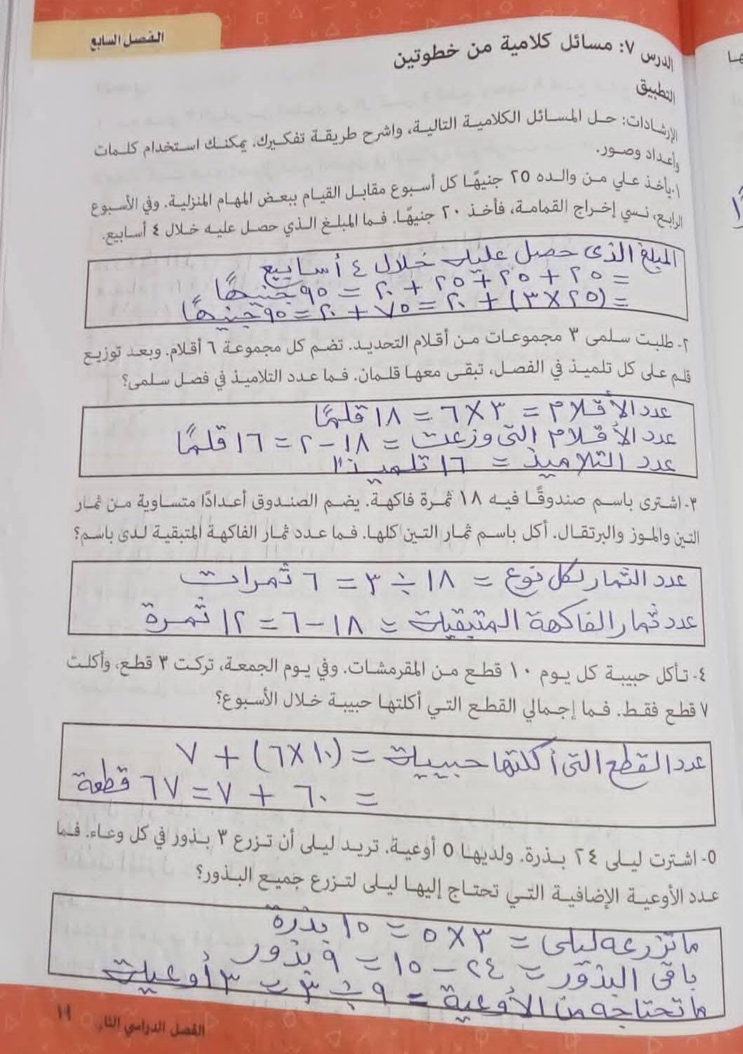 ونستعرض خلال الصور التالية حل كتاب الرياضيات للصف الثالث الابتدائي الترم الثاني 2026: