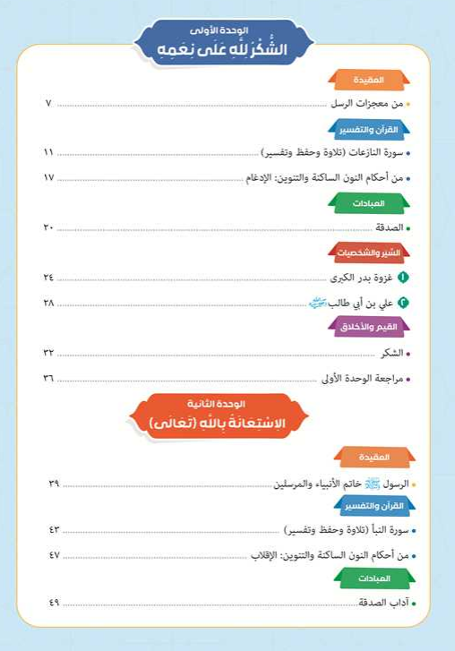 ويُمكن الاطلاع على الوحدة الثانية والثالثة من منهج التربية الدينية الإسلامية للصف الرابع الابتدائي الترم الثاني 2026 من خلال الصور التالية: