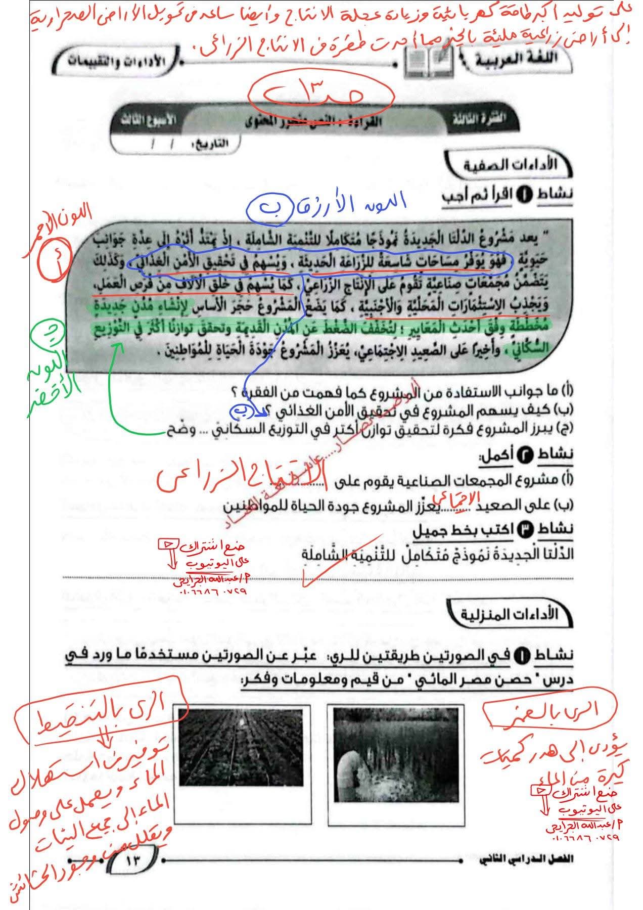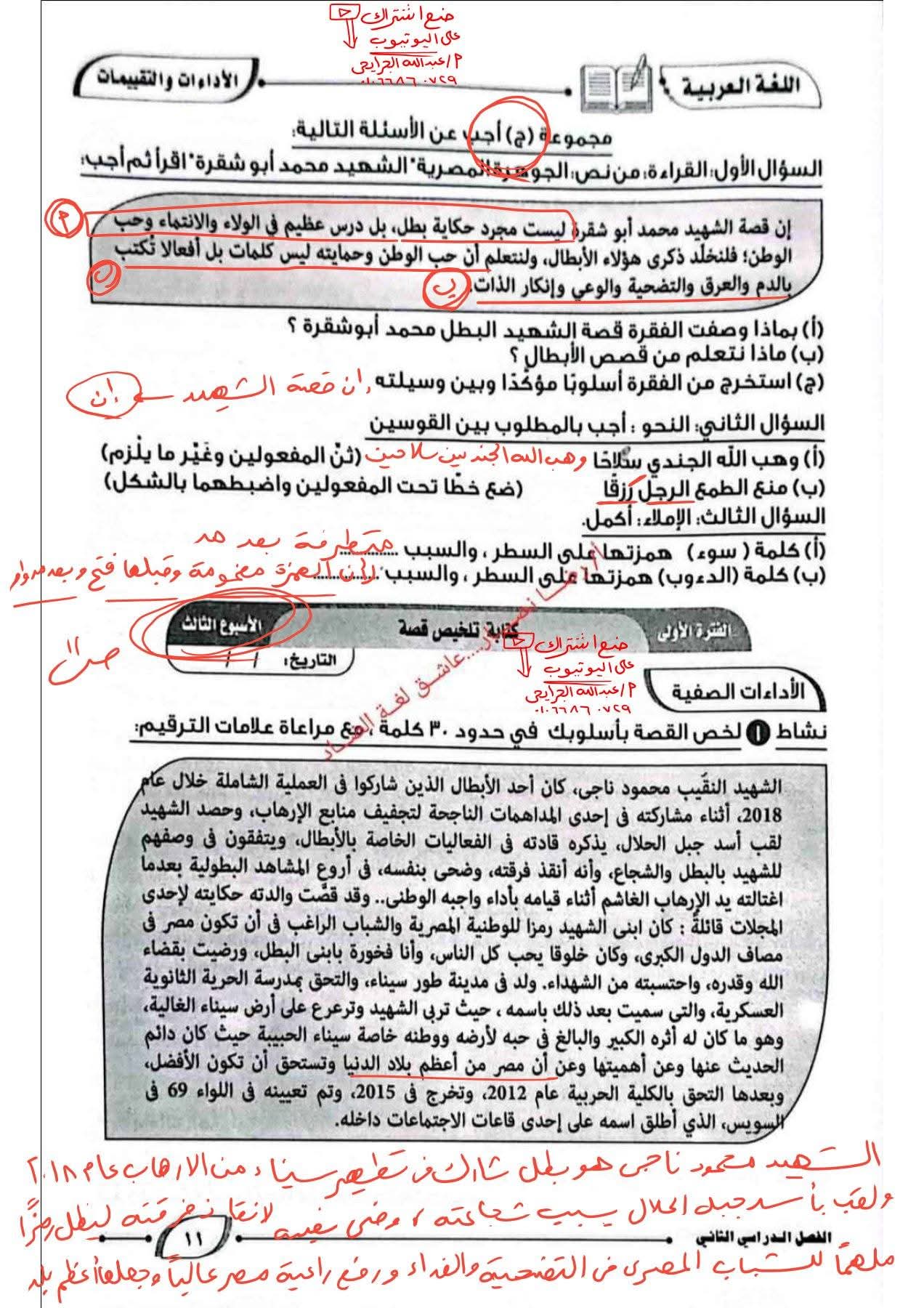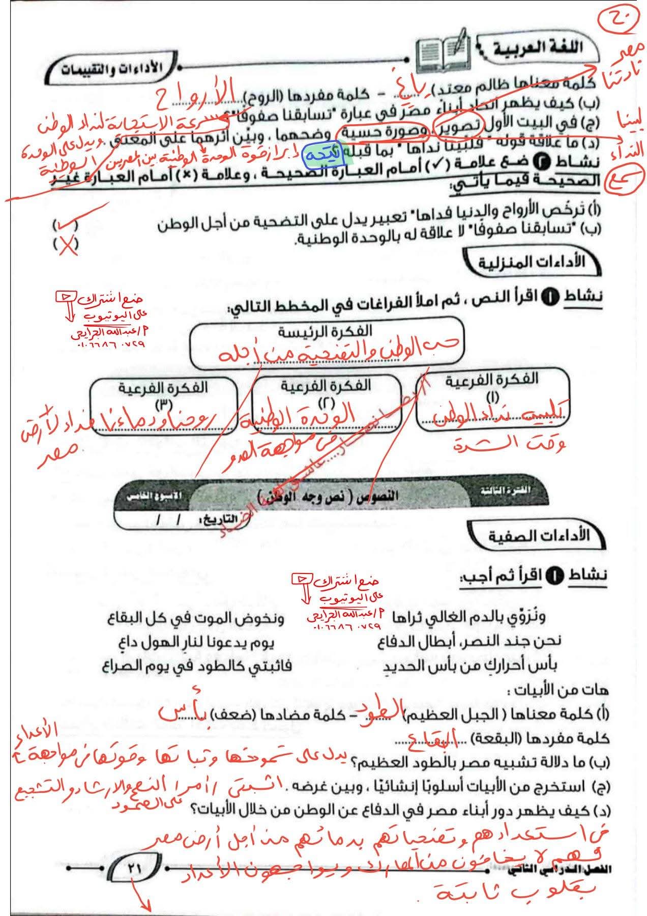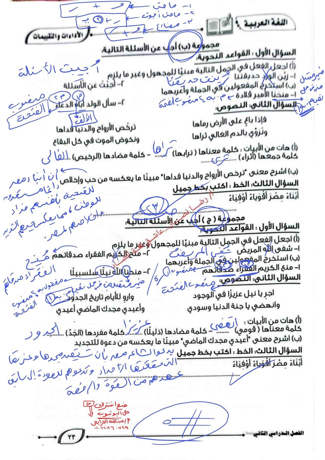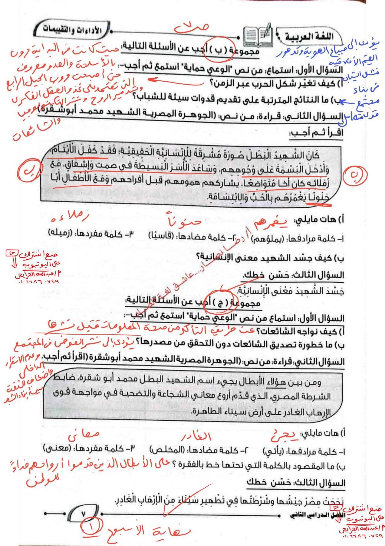 حل كتاب التقييمات للصف الأول الإعدادي لغة عربية الترم الثاني