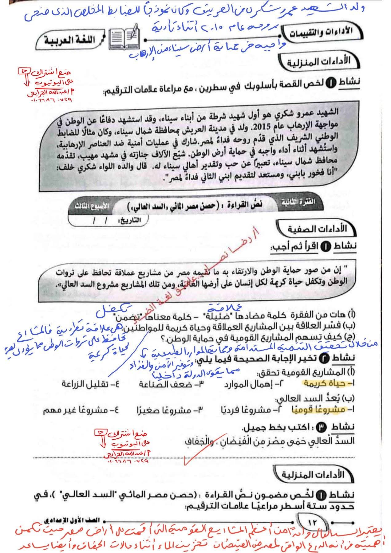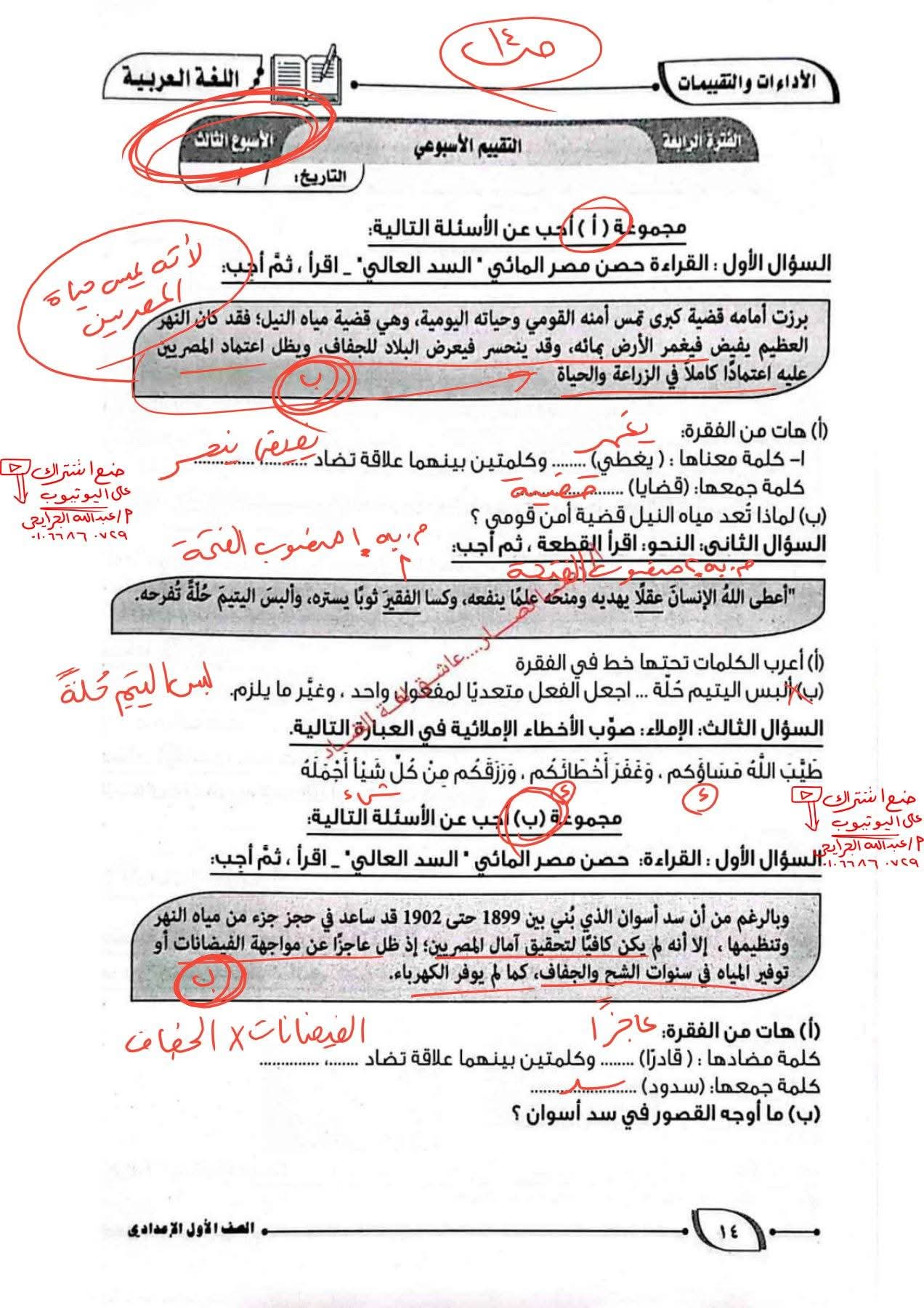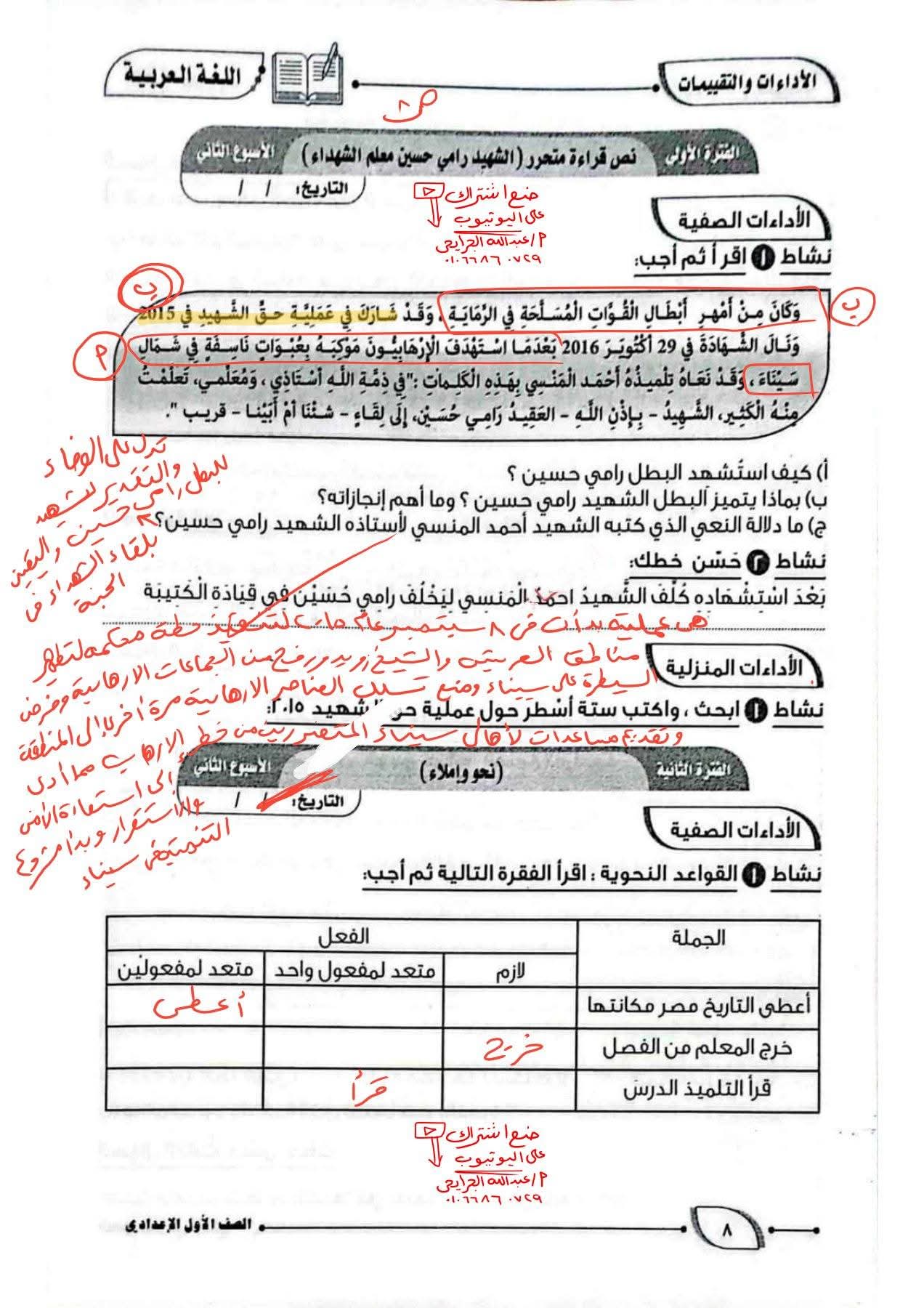 ويستطيع طلاب المرحلة الإعدادية الاطلاع على كتاب التقييمات للصف الأول الإعدادي لغة عربية كالتالي: