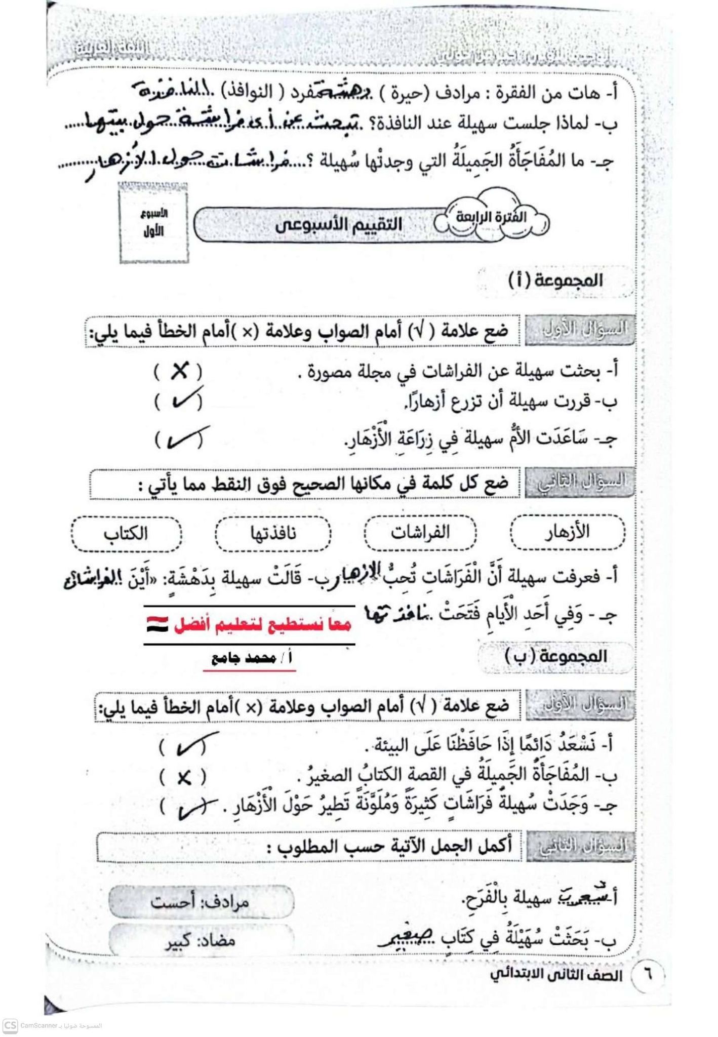 ويستطيع طلاب الثاني الابتدائي وأولياء الأمور الاطلاع على حل كتاب التقييمات للصف الثاني الابتدائي الترم الثاني 2026 من خلال الصور التالية:
