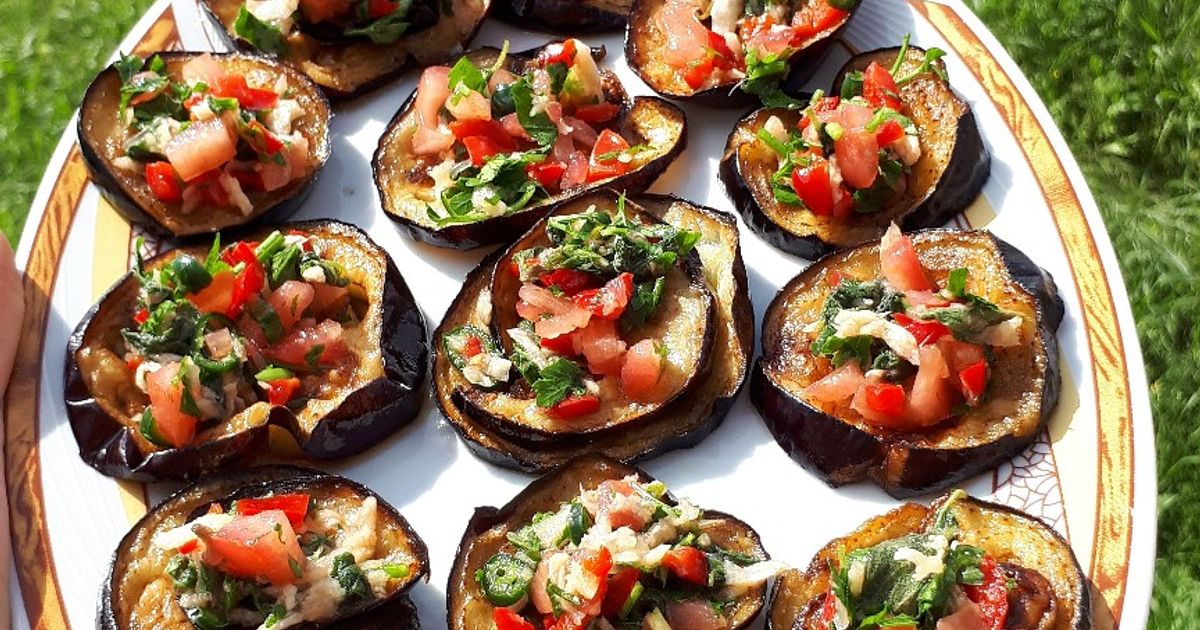 7. سلطة الطماطم والباذنجان المشوي بالثوم والأعشاب