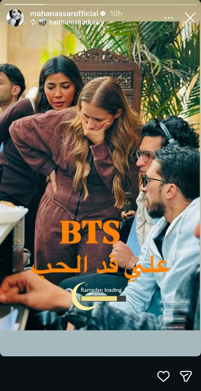 تواصل الفنانة مها نصار تصوير مشاهدها في مسلسل “على قد الحب”، المقرر عرضه ضمن سباق دراما رمضان 2026، حيث شاركت جمهورها صورة من كواليس العمل جمعتها بالفنانة نيللي كريم، عبر حسابها بمنصة "إنستجرام"، في رسالة دعم واضحة للمسلسل الذي تشارك في بطولته.