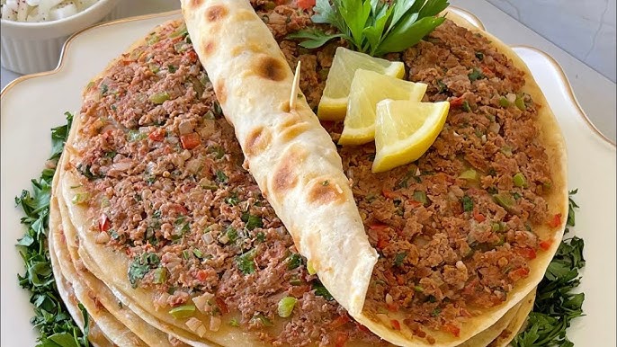 - تُشكل قطع صغيرة من العجينة، ويوضع اللحم داخلها.