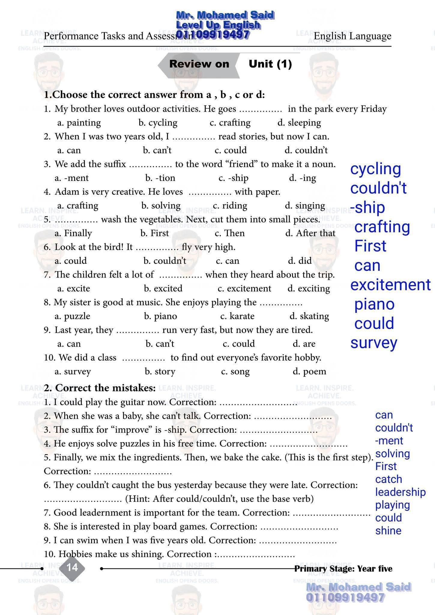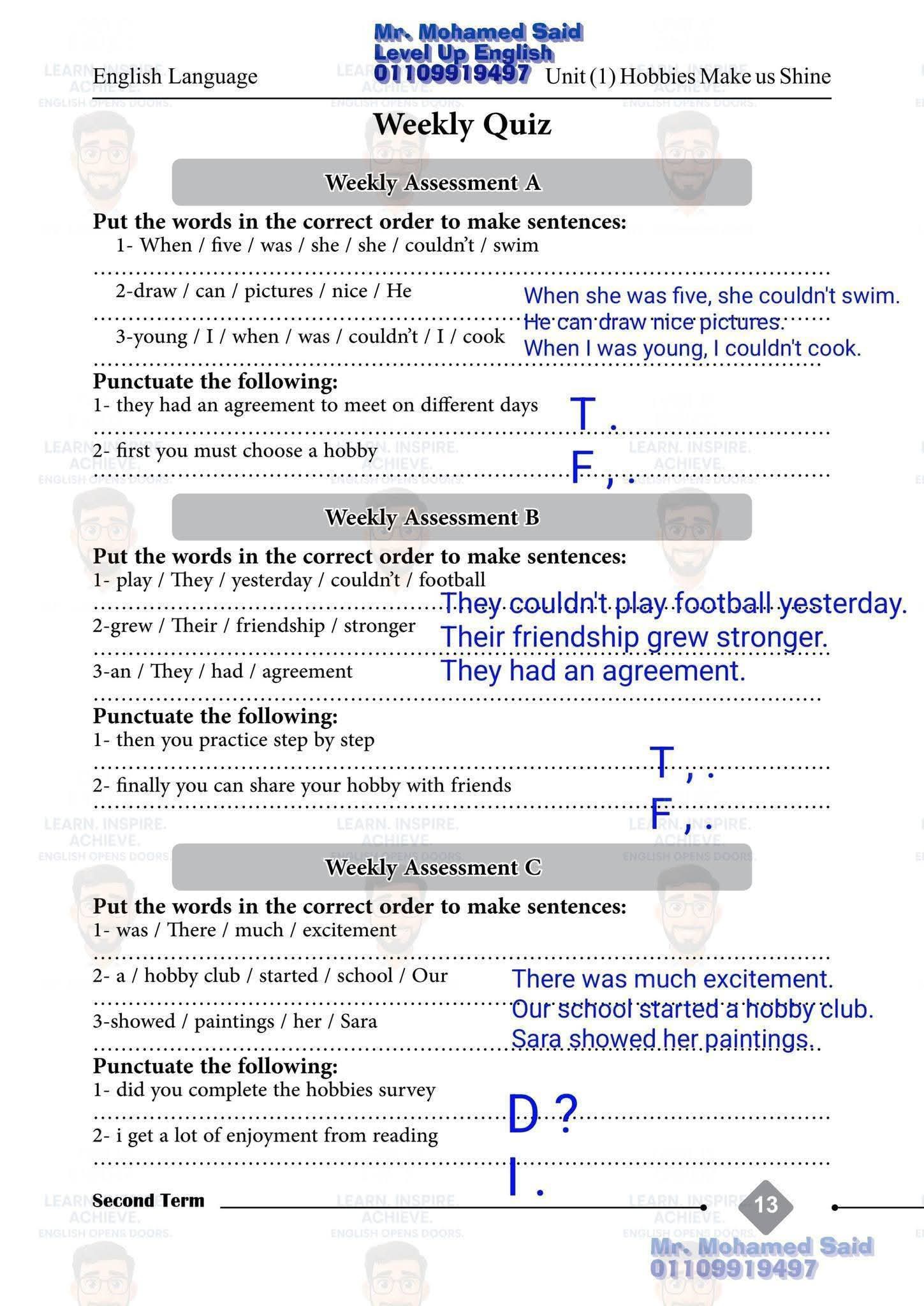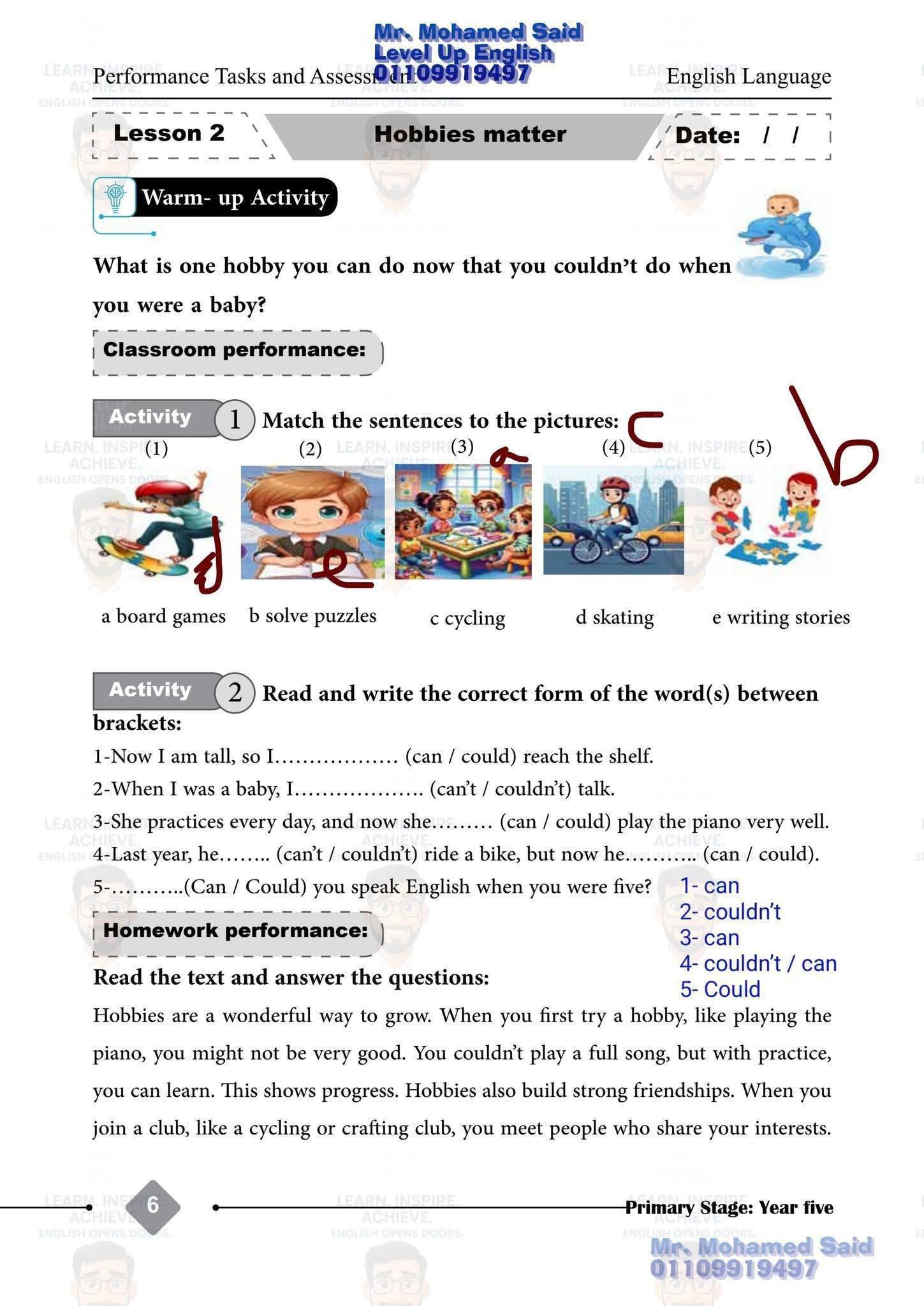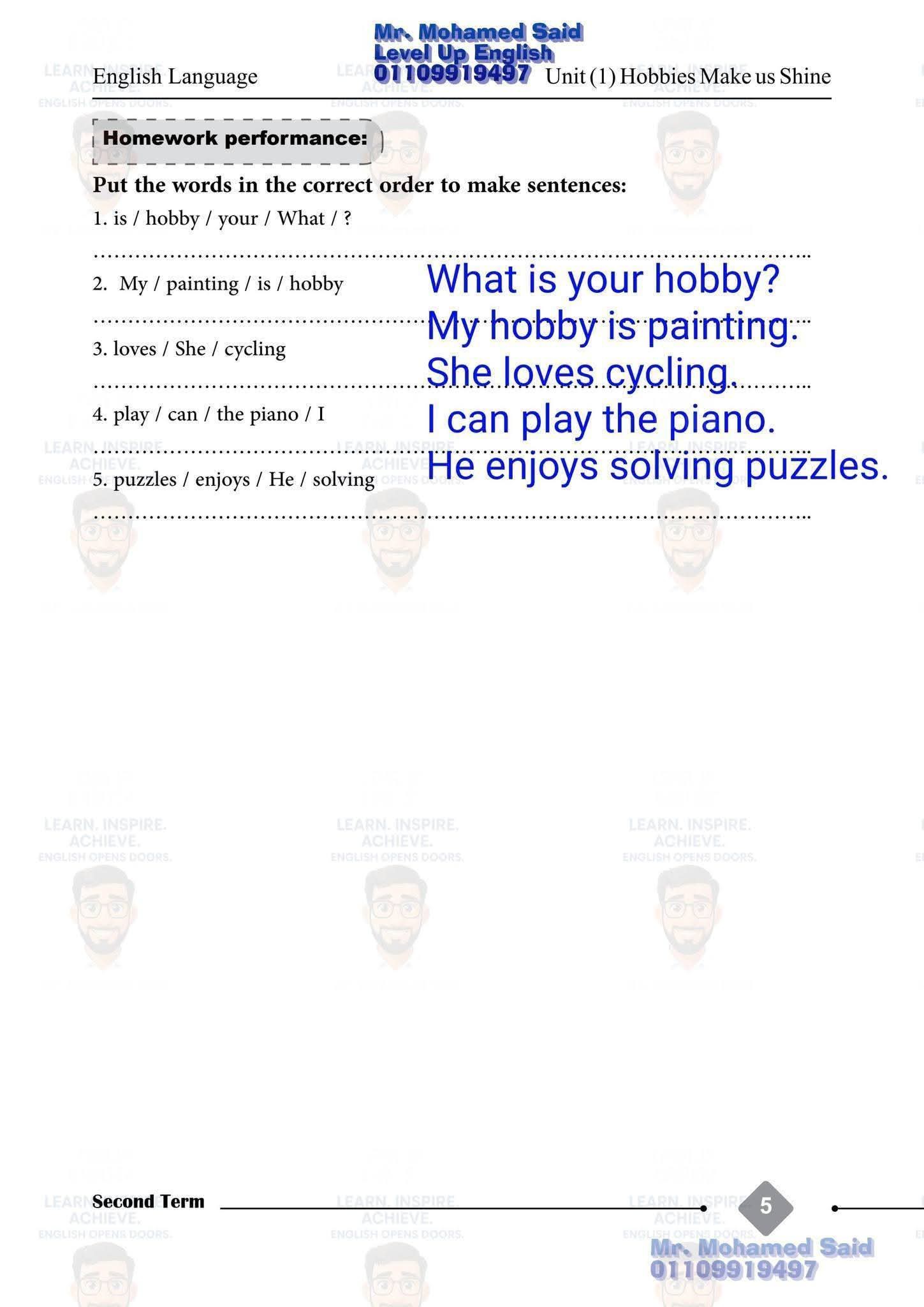 حل كتاب التقييمات للصف الخامس الابتدائي انجليزي الترم الثاني