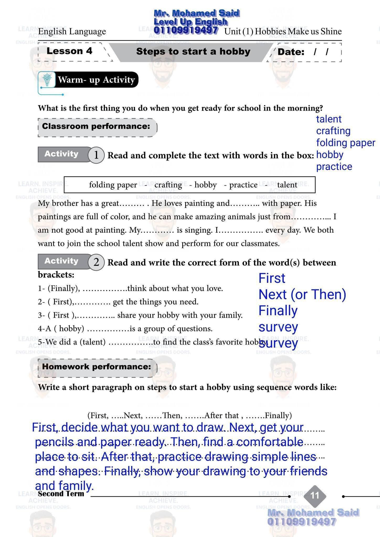 حل كتاب التقييمات للصف الأول الإعدادي إنجليزي الترم الثاني 2026