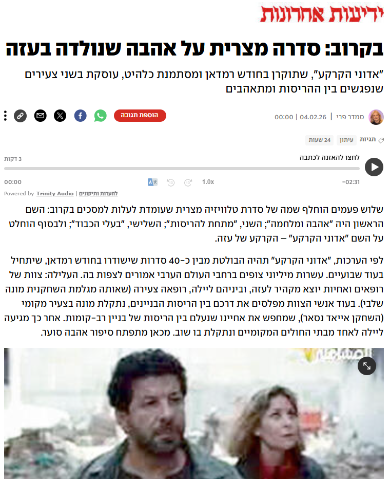 وسلطت صحيفة يديعوت أحرونوت، ذائعة الصيت في إسرائيل، الضوء على سيناريو المسلسل، الذي يكشف معاناة الشعب الفلسطيني وأطفال غزة مع جيش الاحتلال الإسرائيلي، إبان الحرب الإسرائيلية على غزة.