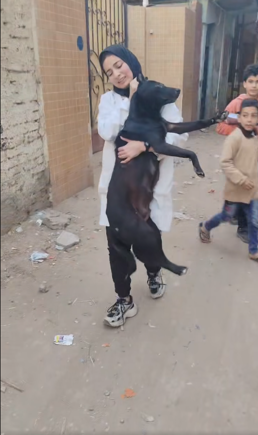 وتابعت البلتاجي: “ذهبت ومعي مخدر لتخديرها، لكنني تفاجأت بلعب الأطفال معها وركلها بأقدامهم، فأمسكتها وحملتها، وكانت كلبة مسالمة للغاية وحنينة فوق الطبيعي”.