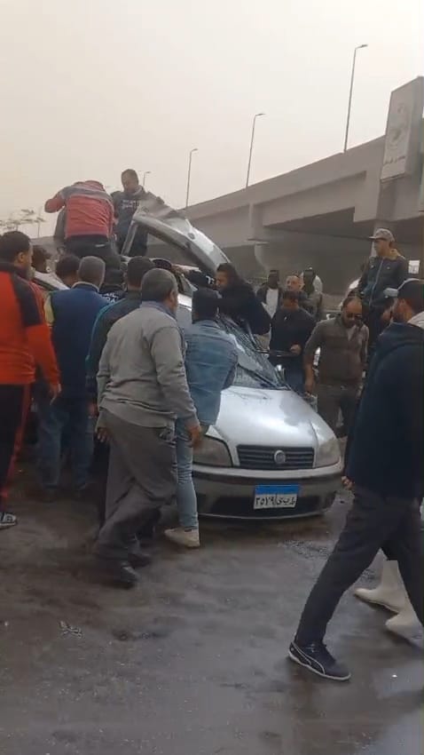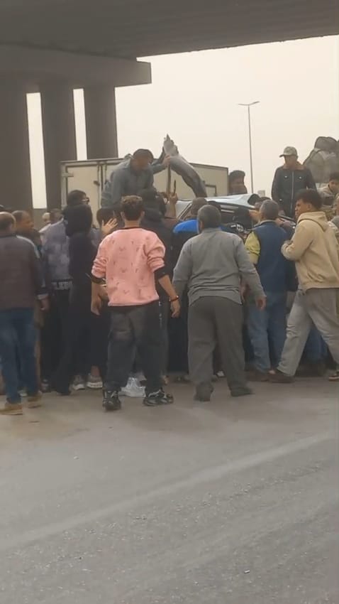 كما حاول الأهالي، تكسير الأبواب والزجاج لإخراج المصابين المحاصرين داخل السيارة المتحطمة بسبب الحادث.