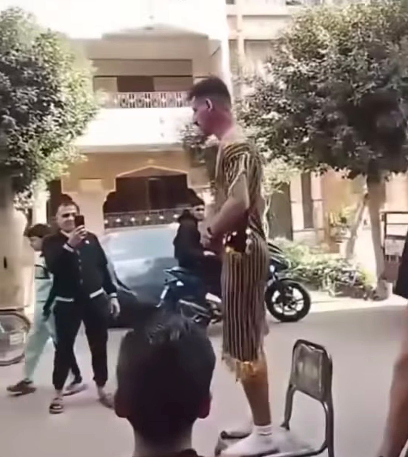 وبعد مشاهدة العديد لهذا الفيديو المتداول، تذكروا مشهد من مسلسل “الأسطورة” الذي قدمه الفنان محمد رمضان والمخرج محمد سامي، حيث في أحد مشاهد المسلسل قامت الشخصية التي جسدها “نمبر وان” وهي ناصر الدسوقي، بضرب أحد جيران زوجته “شهد” وهو “مرسي”، انتقامًا لما فعله معها، حيث سرب صورها وهي بـ “قميص النوم”، وهذا ما فعله ناصر الدسوقي، قام بضرب مرسي في منتصف الشارع أمام الجميع وألبسه نفس قميص النوم الذي سربه وقام بتصويره ليكون عبرة لما فعله في زوجته.