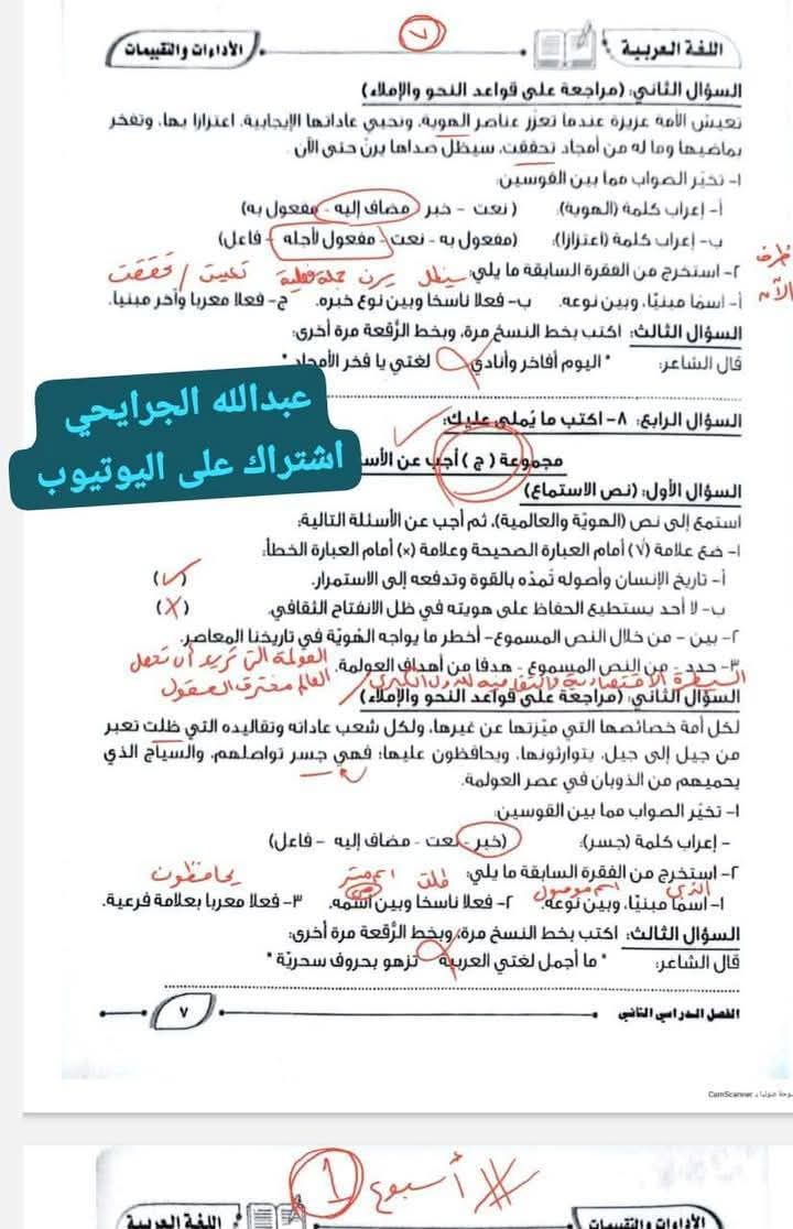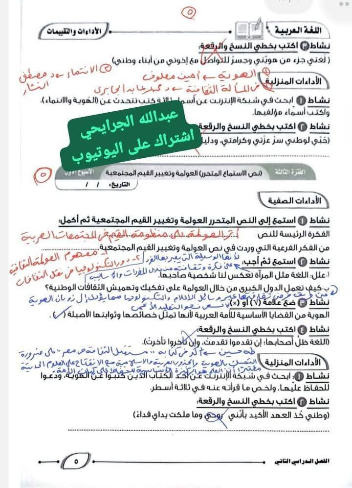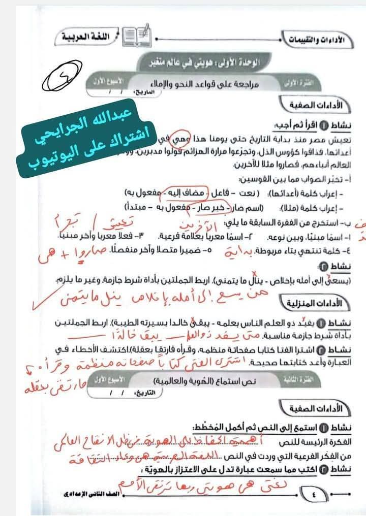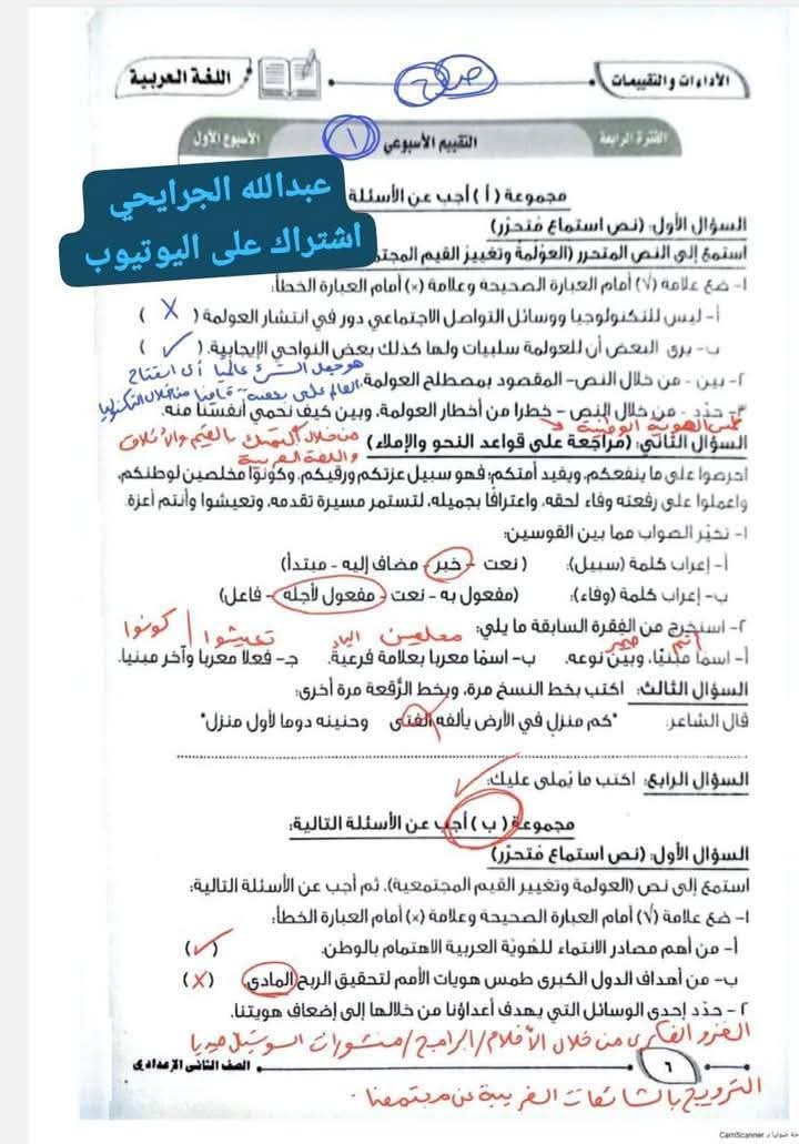 ويستطيع طلاب الصف الثاني الإعدادي الاطلاع على حل تقييمات الصف الثاني الإعدادي عربي: