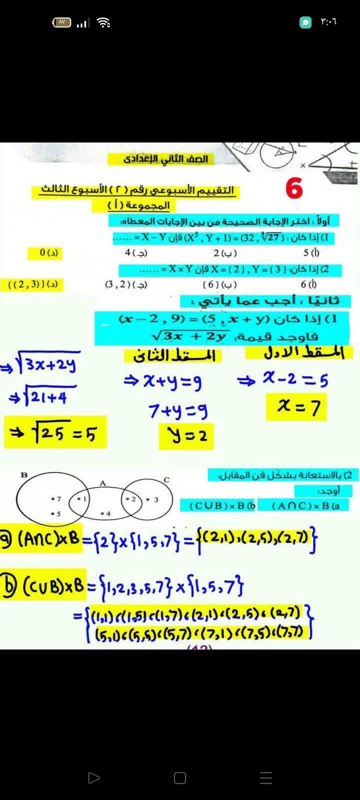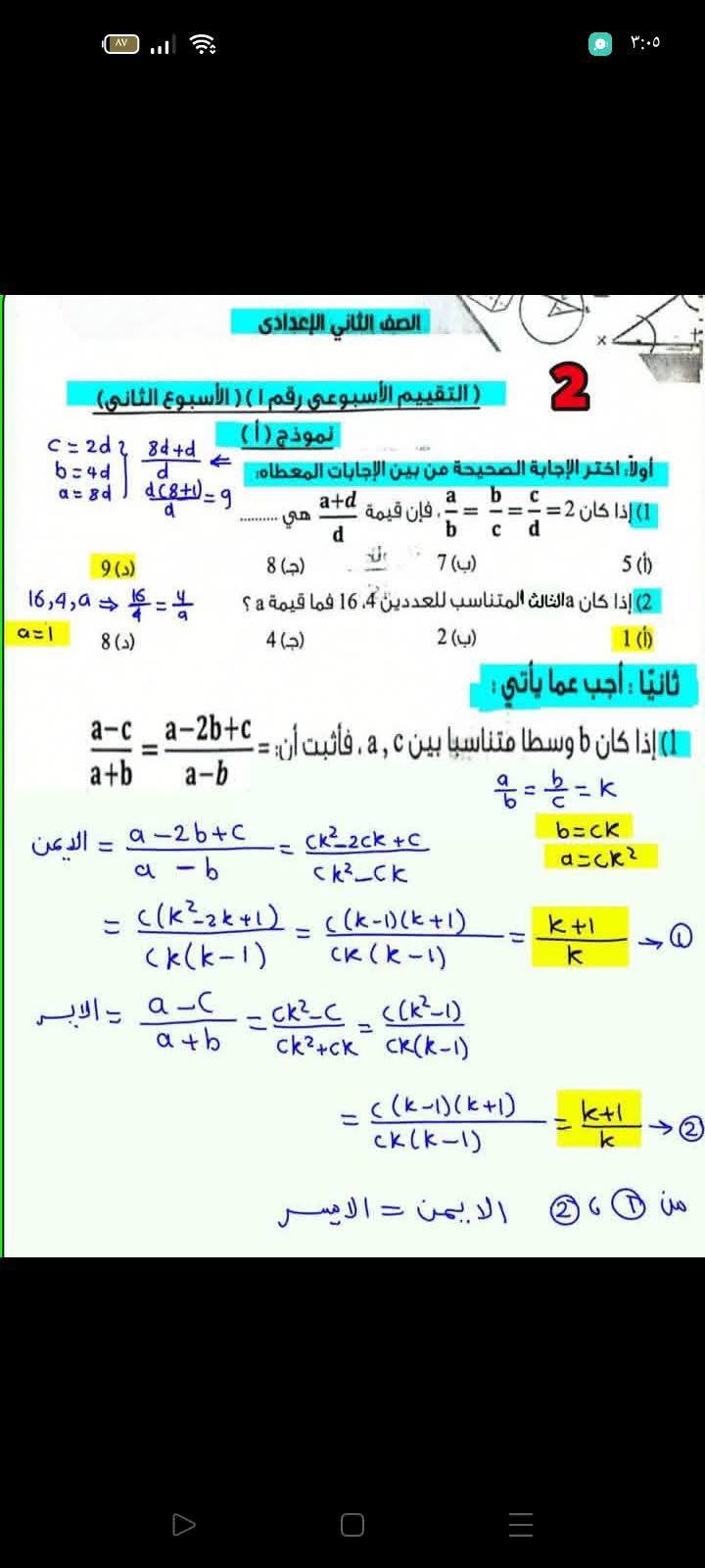 حل تقييمات الصف الثاني الاعدادي 2026