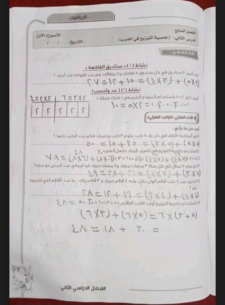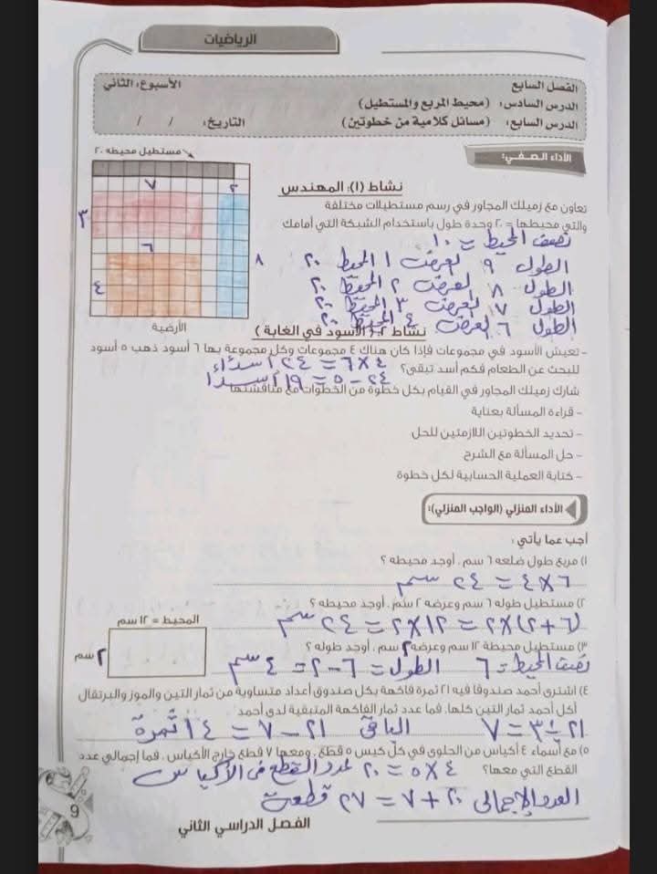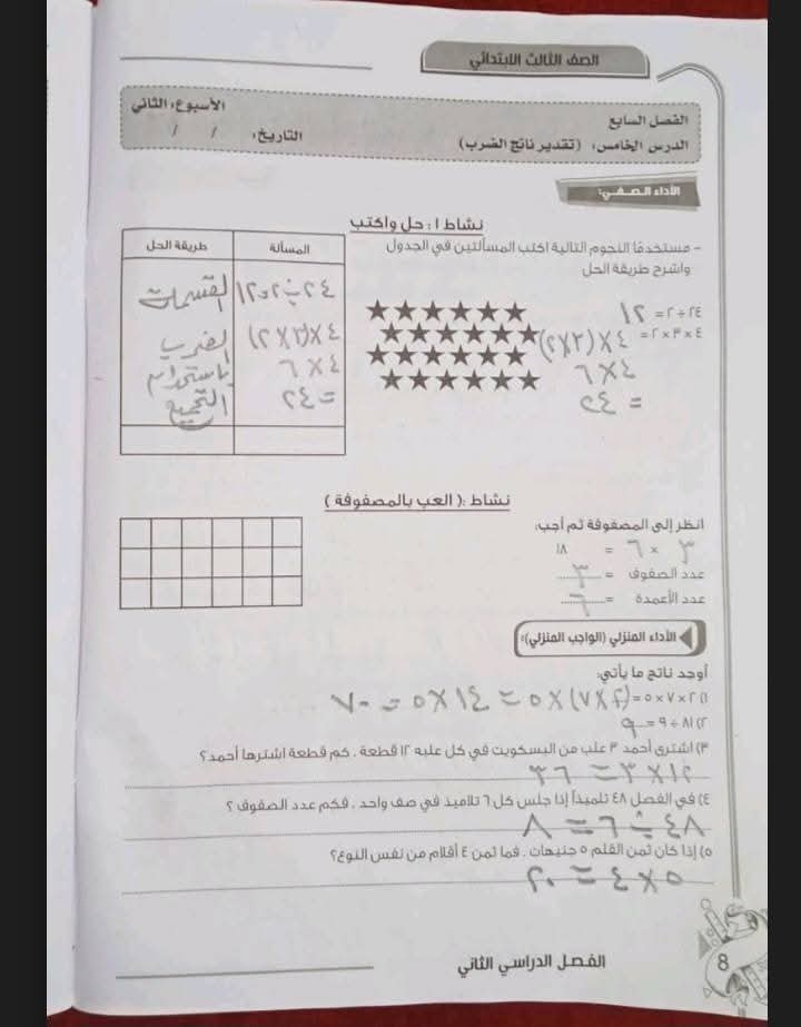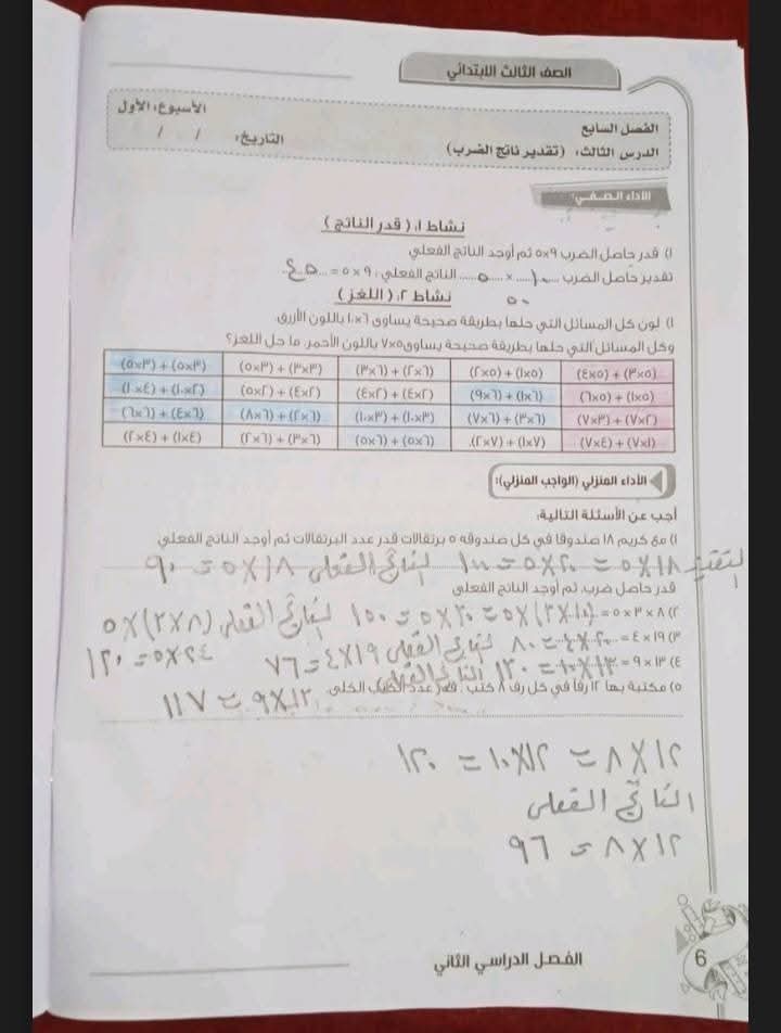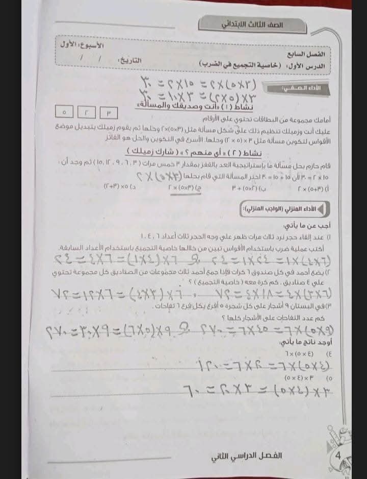 ونستعرض خلال الصور التالية حل تقييم الرياضيات للصف الثالث الابتدائي الترم الثاني 2026: