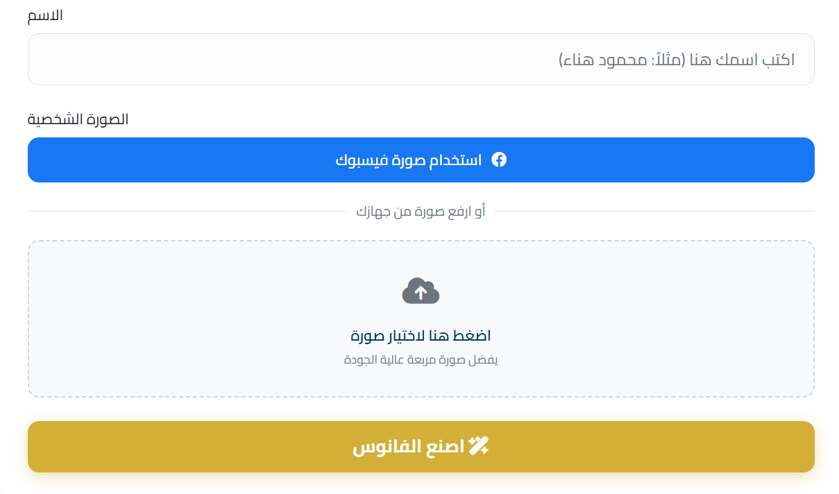 - إضافة الصورة: يُمكن استخدام صورة فيسبوك الخاصة بك مباشرة، أو رفع صورة من جهازك.