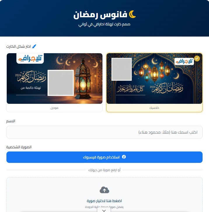 تصميم فانوس رمضان 2026 بصورتك واسمك