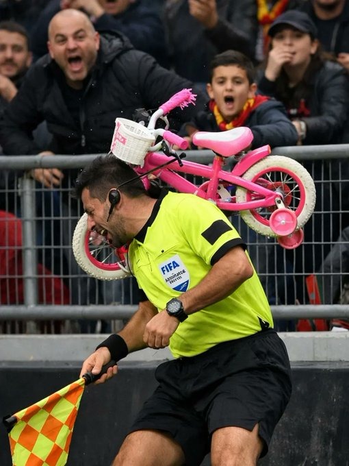 وتفاقمت خطورة الواقعة عندما أصابت دراجة أطفال أُلقيت من المدرجات الحكم المساعد إصابة مباشرة في الرأس، ما تسبب في جرح خطير فوق حاجبه الأيسر وأسفر عن سقوطه أرضًا وسط حالة من الذعر داخل الملعب، بينما هرع اللاعبون والأجهزة الفنية لمحاولة إسعافه.
