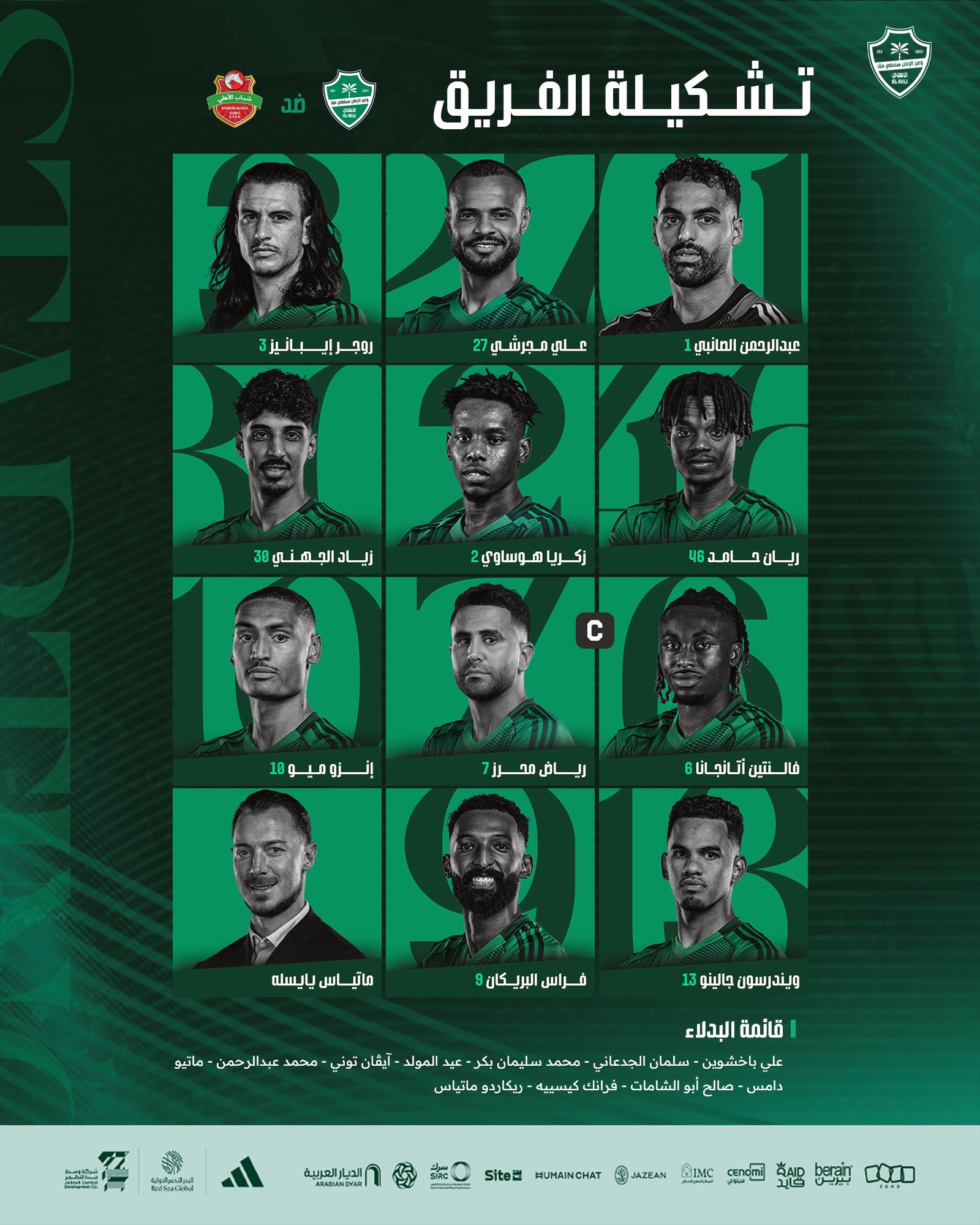 تضم دكة البدلاء مجموعة مميزة تمنح الجهاز الفني حلولًا متعددة أثناء اللقاء، أبرزها إيفان توني، فرانك كيسيه، ماتيو دامس، محمد عبدالرحمن، صالح أبو الشامات، وسلمان الجدعاني.