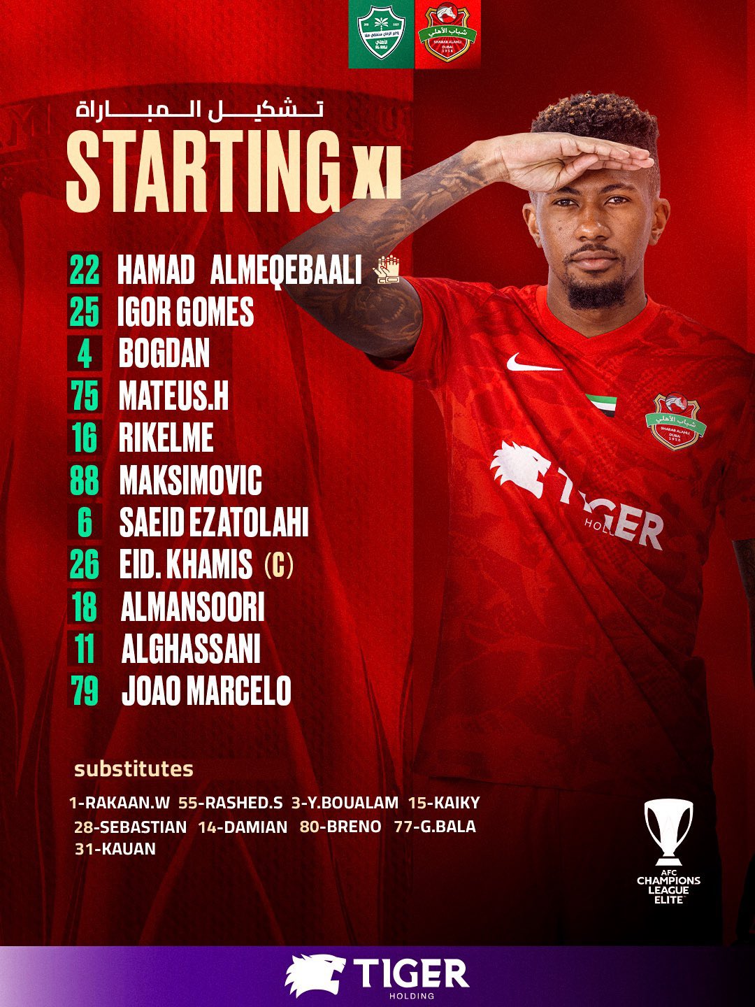 تشكيل شباب أهلي دبي ضد أهلي جدة في أبطال آسيا للنخبة