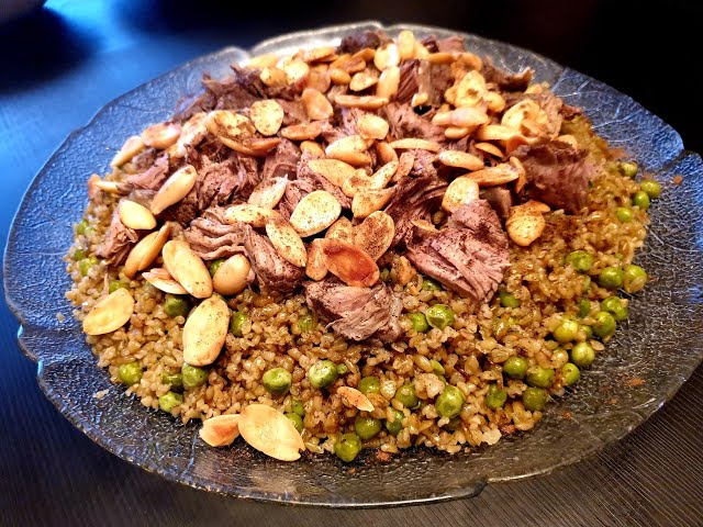 يُطهى اللحم مع البصل، وتُضاف الحبيبات والمرق حتى تنضج.