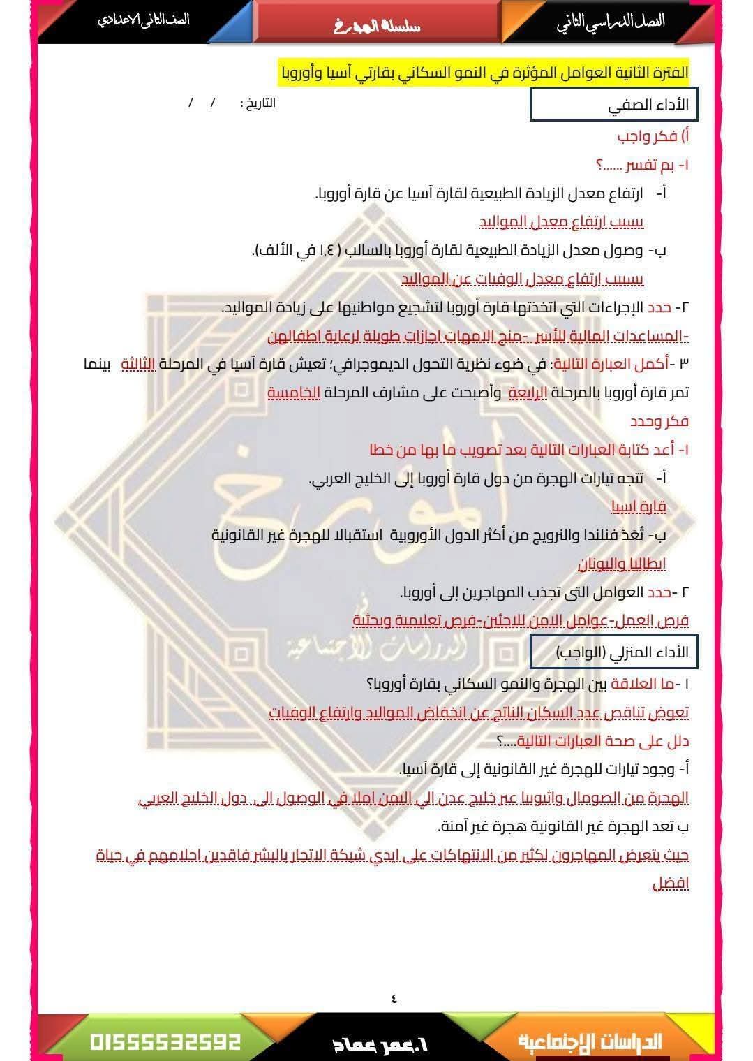 حل كتاب التقييمات للصف الثاني الإعدادي علوم الترم الثاني 2026