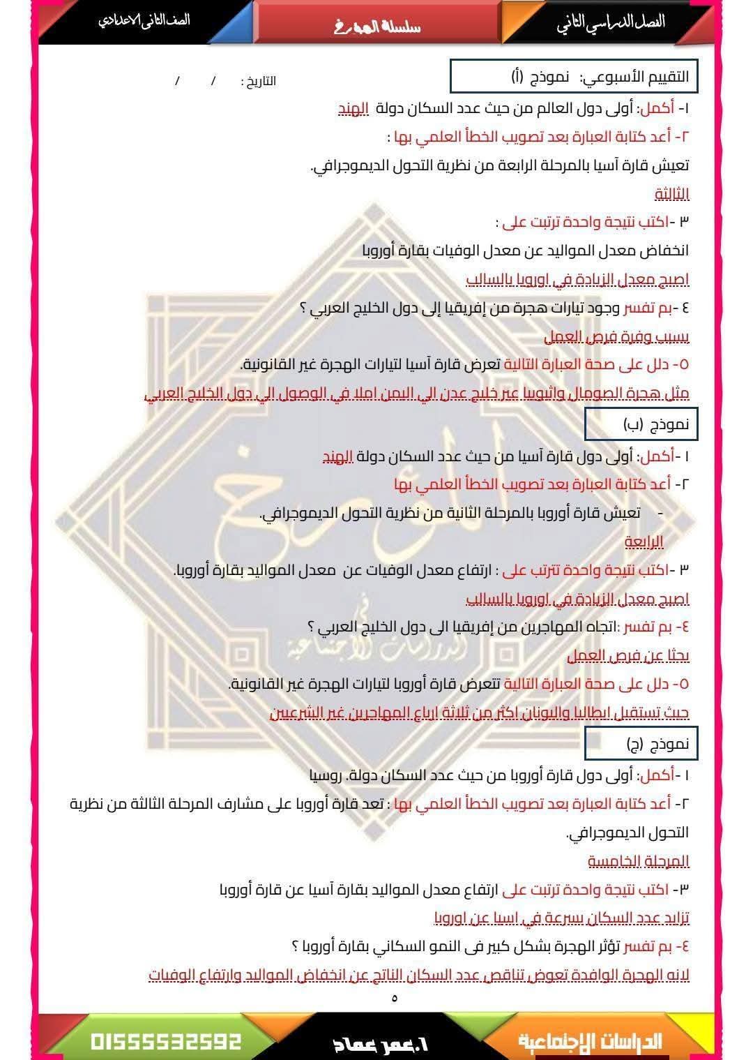 تحميل التقييم الأسبوعي للصف الثاني الإعدادي إنجليزي