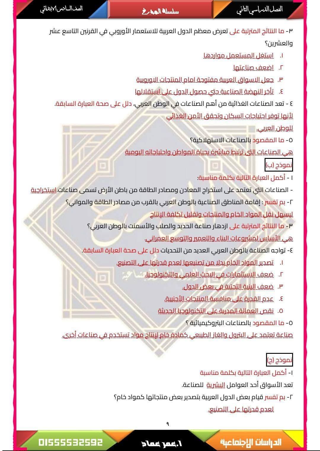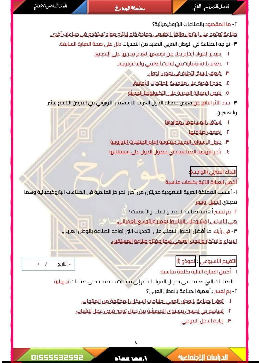 حل كتاب التقييمات للصف السادس الابتدائي دراسات الترم الثاني