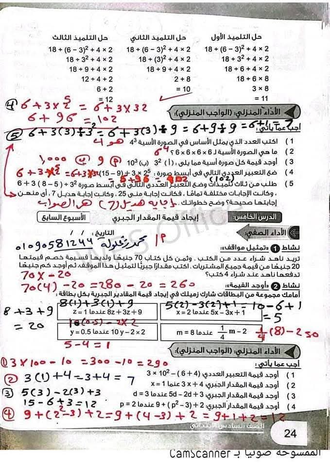 ويُمكن الاطلاع على حل كتاب التقييمات للصف السادس الابتدائي في مادة الرياضيات الترم الثاني 2026 من خلال الصور التالية:
