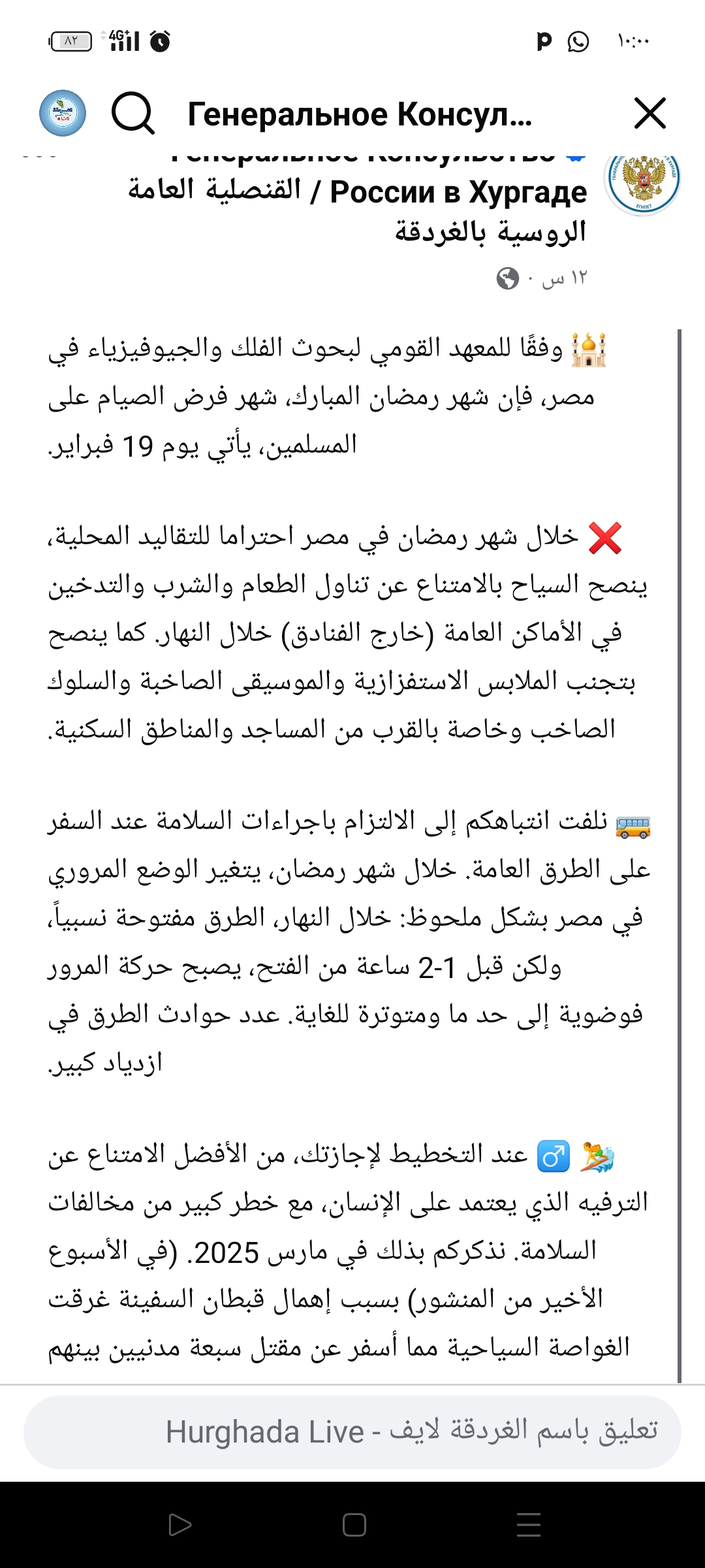 احترامًا للتقاليد المصرية.. القنصلية الروسية بالغردقة تصدر تعليمات لرعاياها خلال رمضان