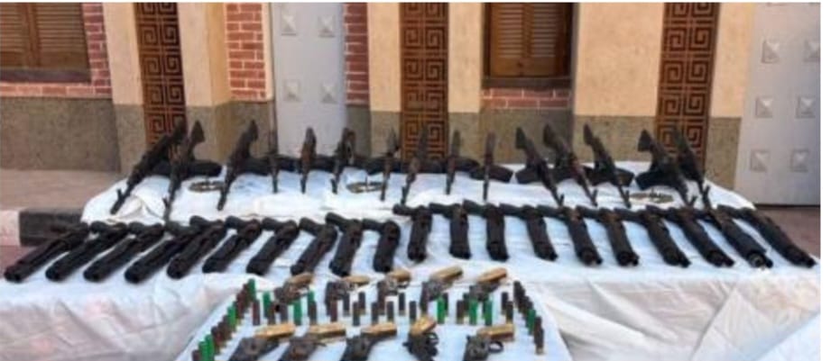 - 61 قطعة سلاح ناري: 23 بندقية آلية، 22 بندقية خرطوش، و16 فرد خرطوش.
