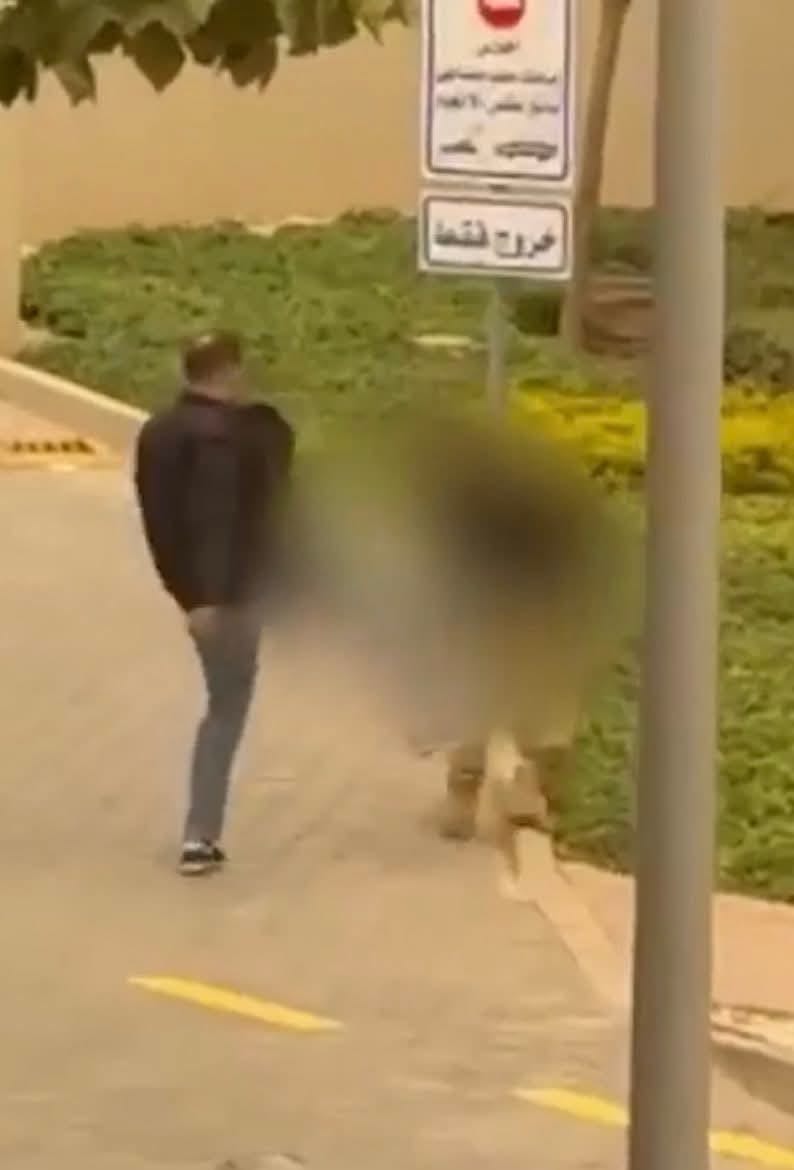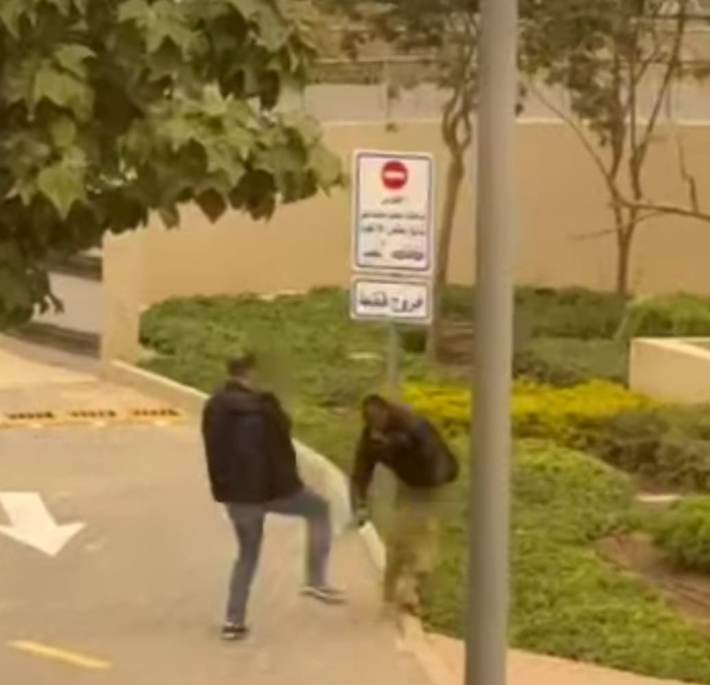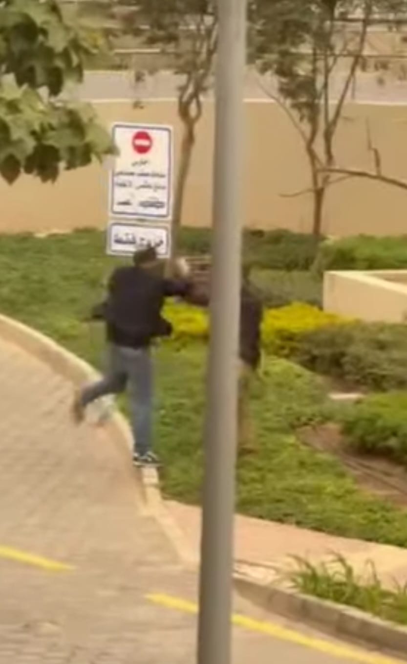 وكان مقطع الفيديو المتداول يظهر الشخص وهو يلكم ويركل فرد الأمن في منطقة حساسة داخل الكمبوند.