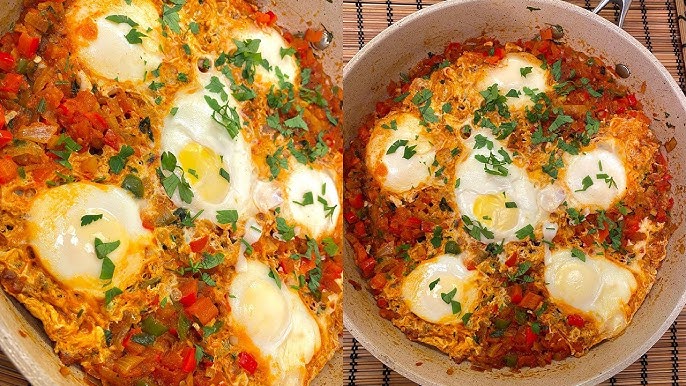 يُكسر البيض فوق الخليط ويُغطى حتى ينضج حسب الرغبة.