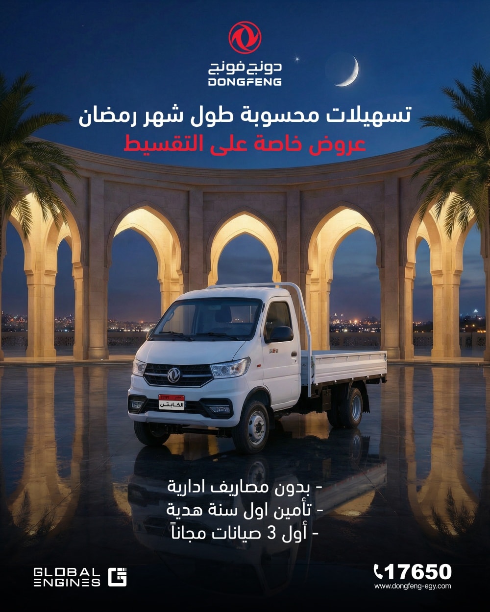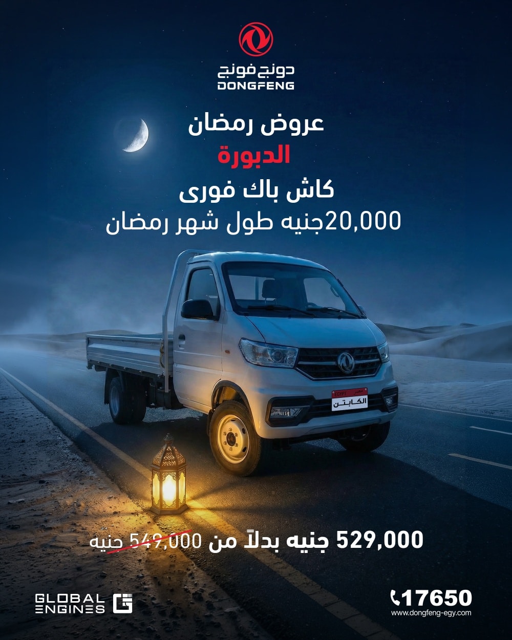 أعلنت جلوبال إنجنز، وكيل علامة دونج فينج التجارية في مصر، عن عروض شهر رمضان 2026. تشمل عروض خاصة على Captain W الدبورة طول شهر رمضان أو حتى نفاذ الكمية.